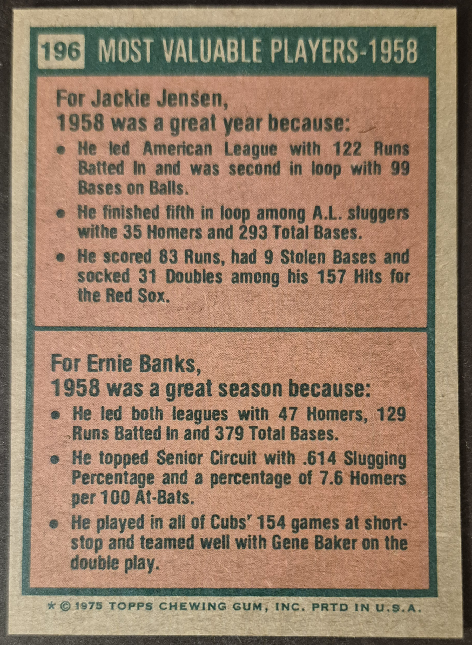 #196 1958 MVPs Jensen/Banks