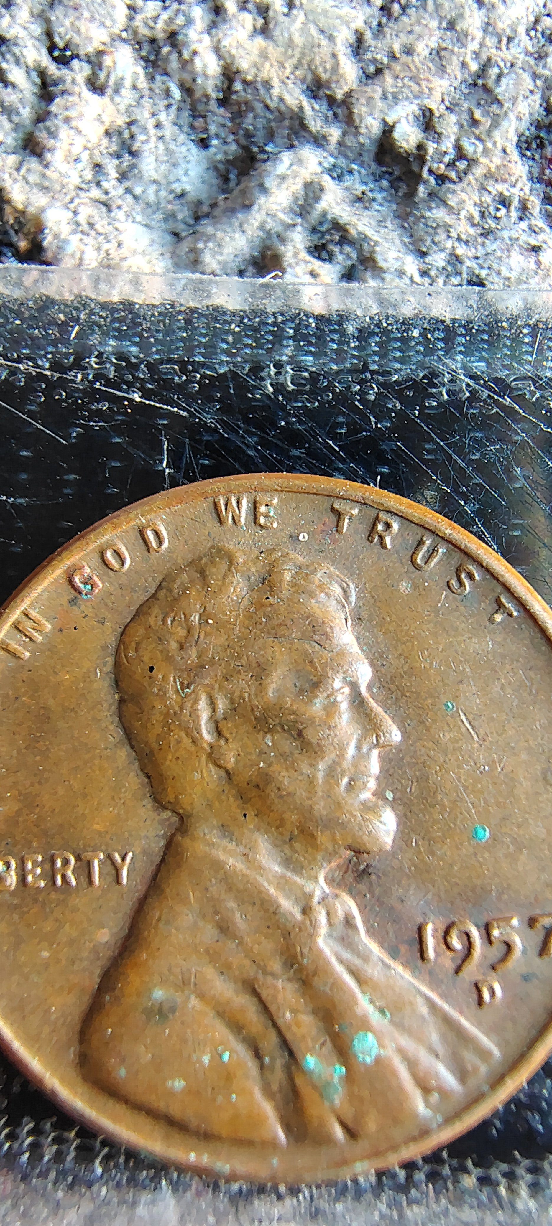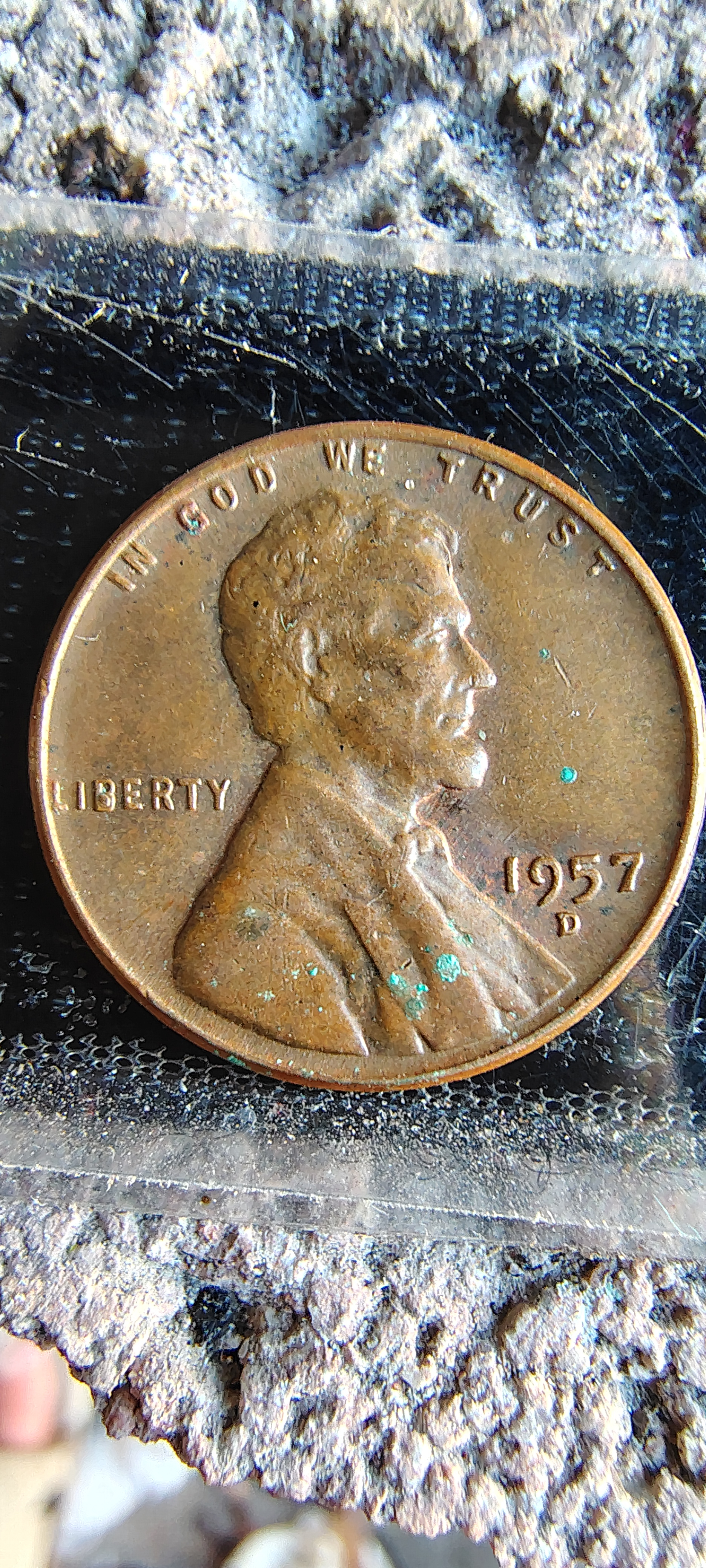 1957-D wheat cent with half th
