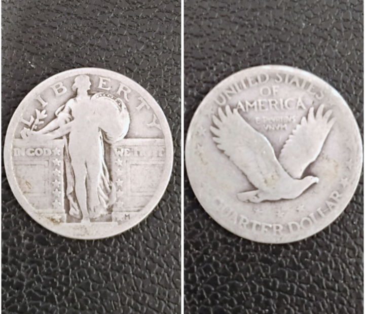 The fourth coin is of course an American silver quarter. The date is likely unreadable (I can;t read it in that picture, which is otherwise clear enough), meaning this is only worth its silver content.