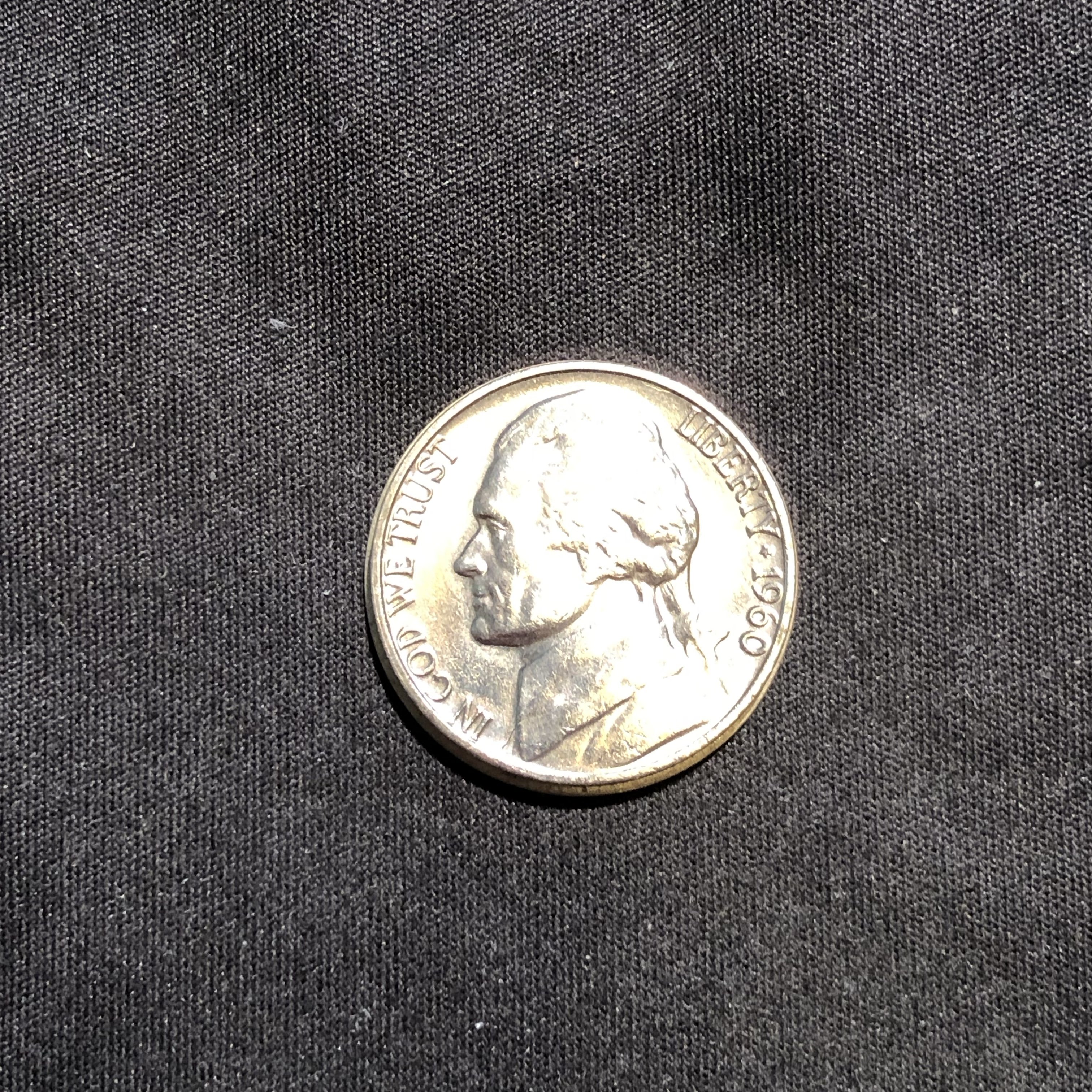 One more clue, the specimen is somewhat thin and chings like silver. Looks more like copper-nickel but sounds like silver.