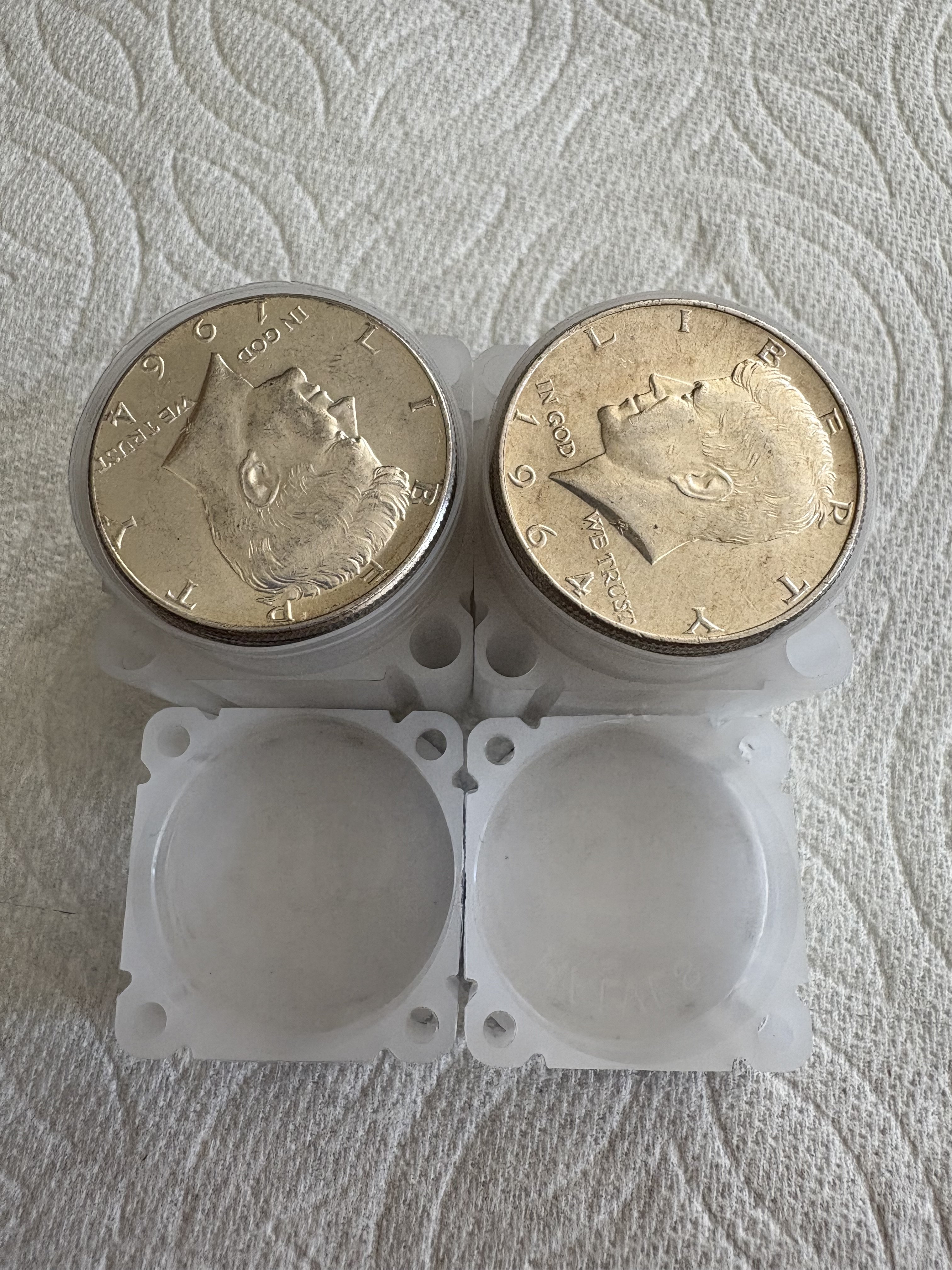 Two Rolls of 1964 Kennedy Silver Half Dollar Priced below Melt Free Shipping