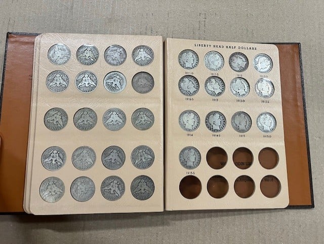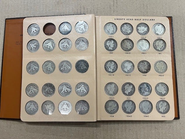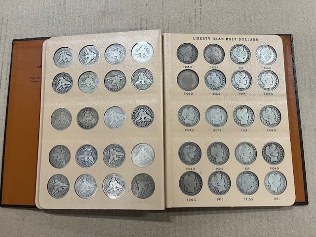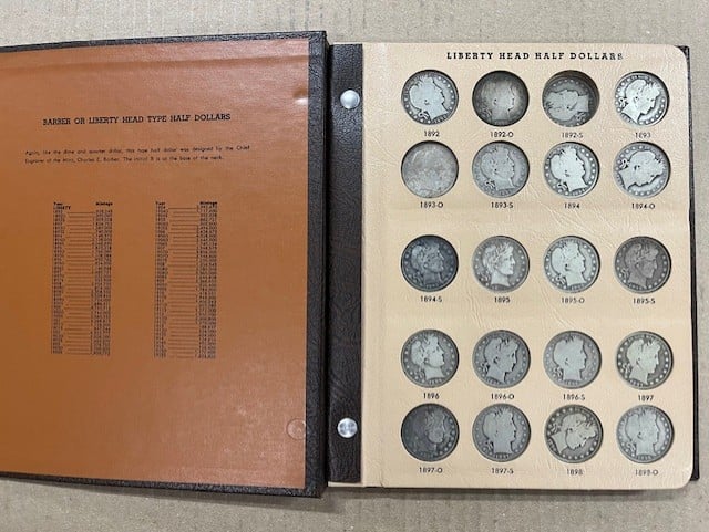 SOLD- Complete Barber Half set in Dansco album. 1oz silver rounds at less than melt shipped.