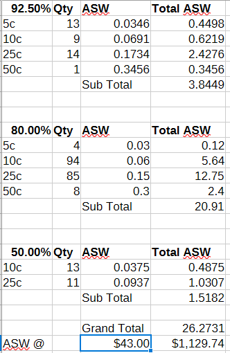 26.27 ounces ASW of junk Canadian silver. Selling below melt $1130 delivered in USA. PPAL F/F or check.