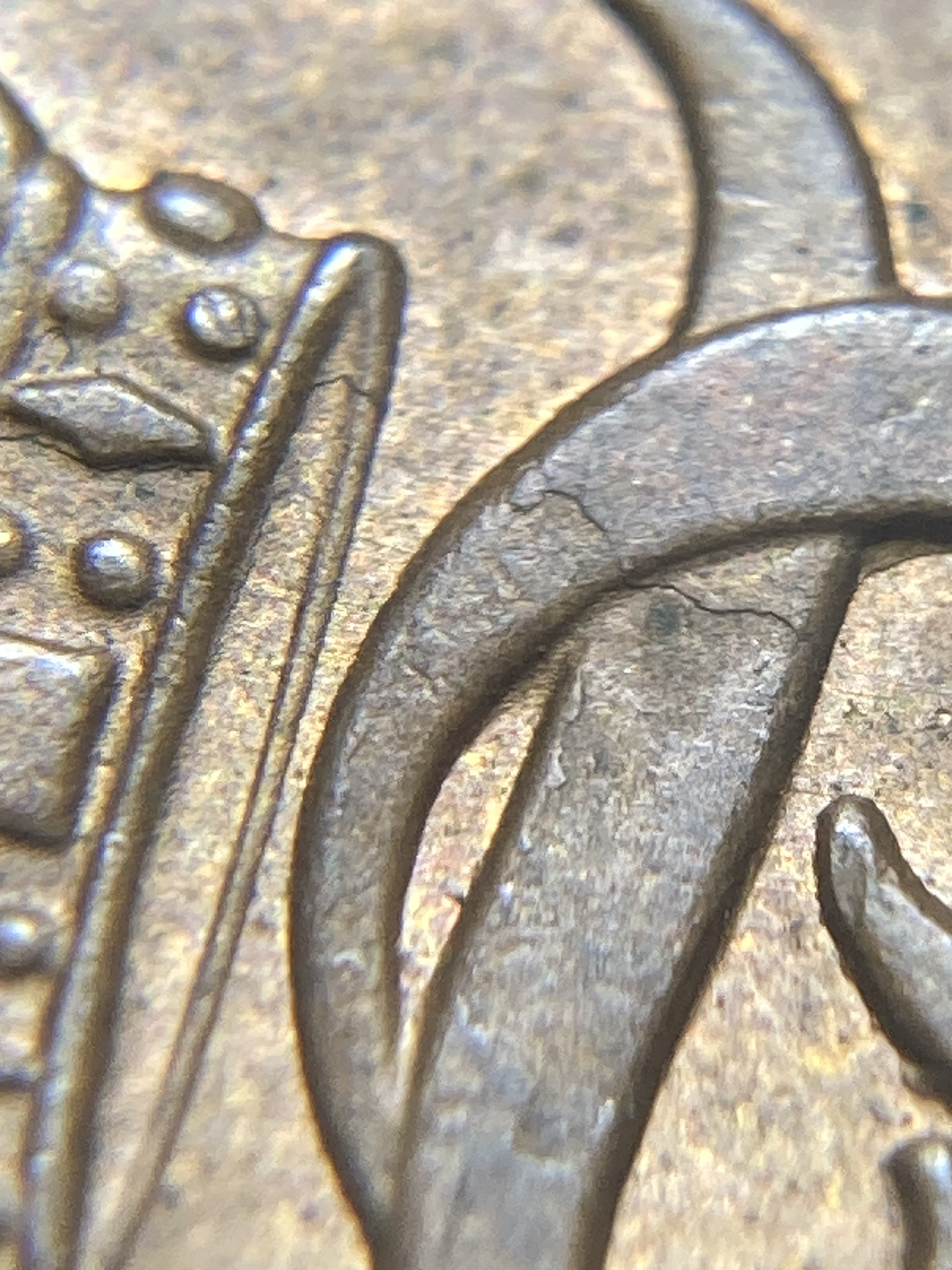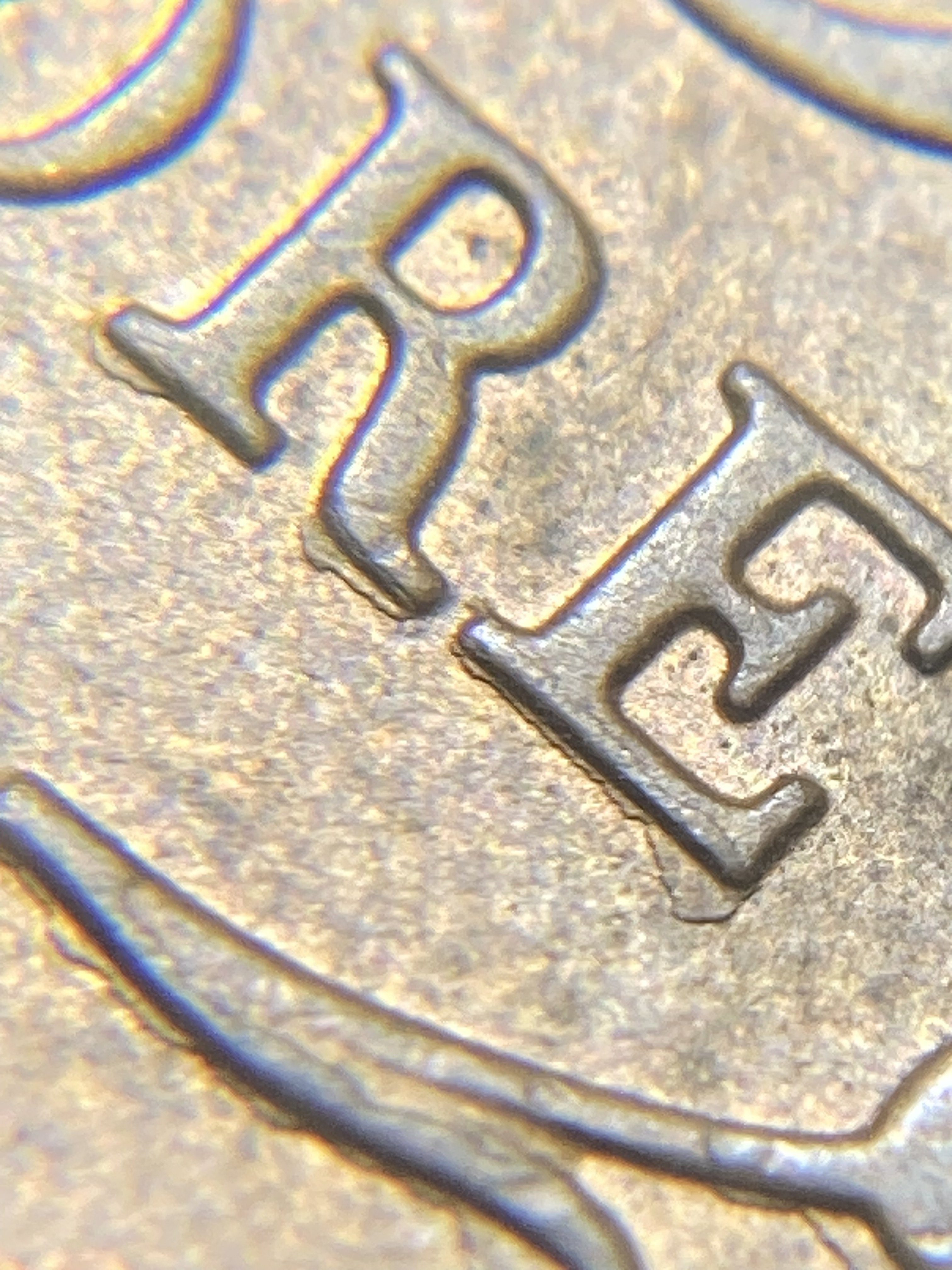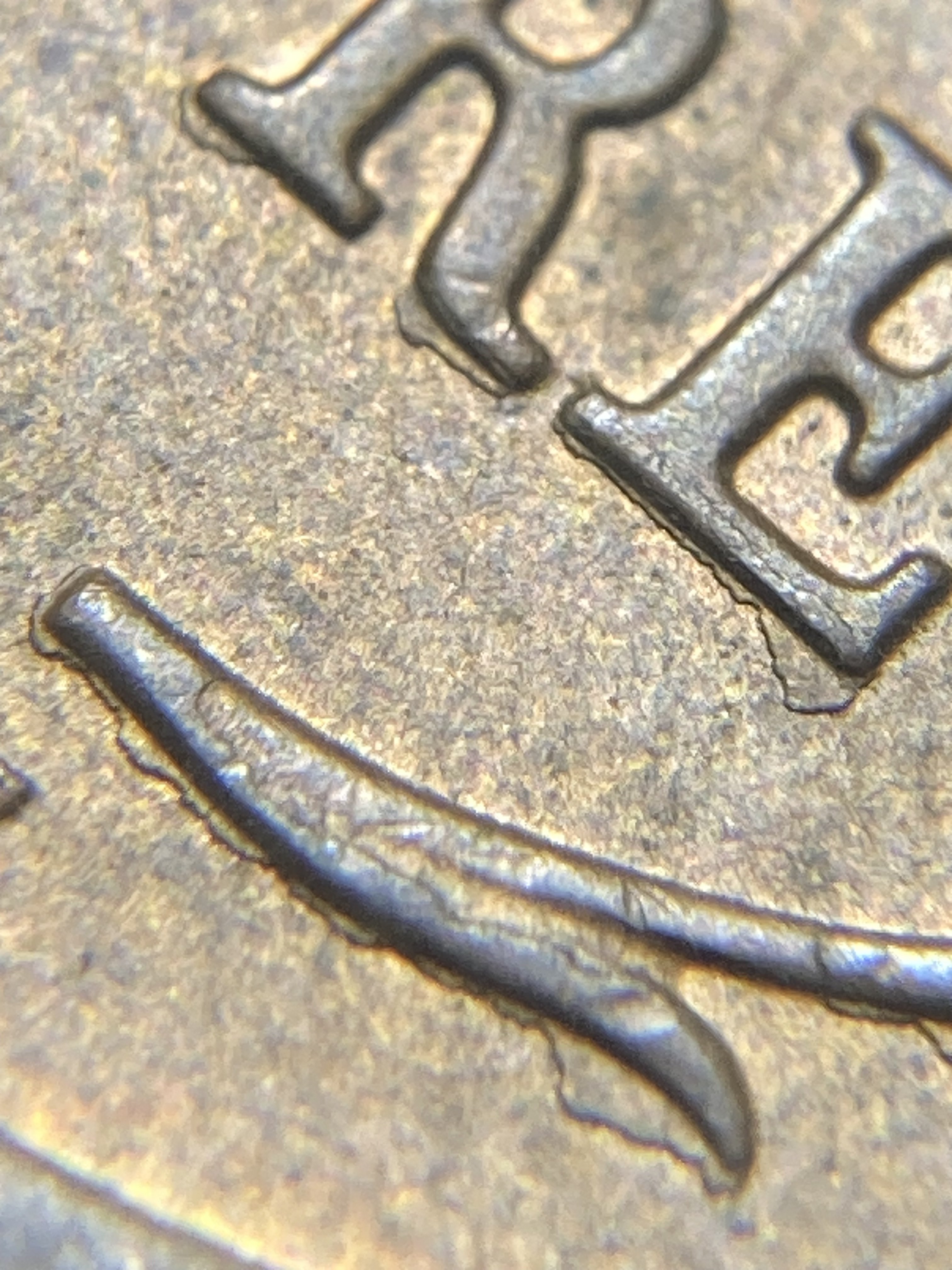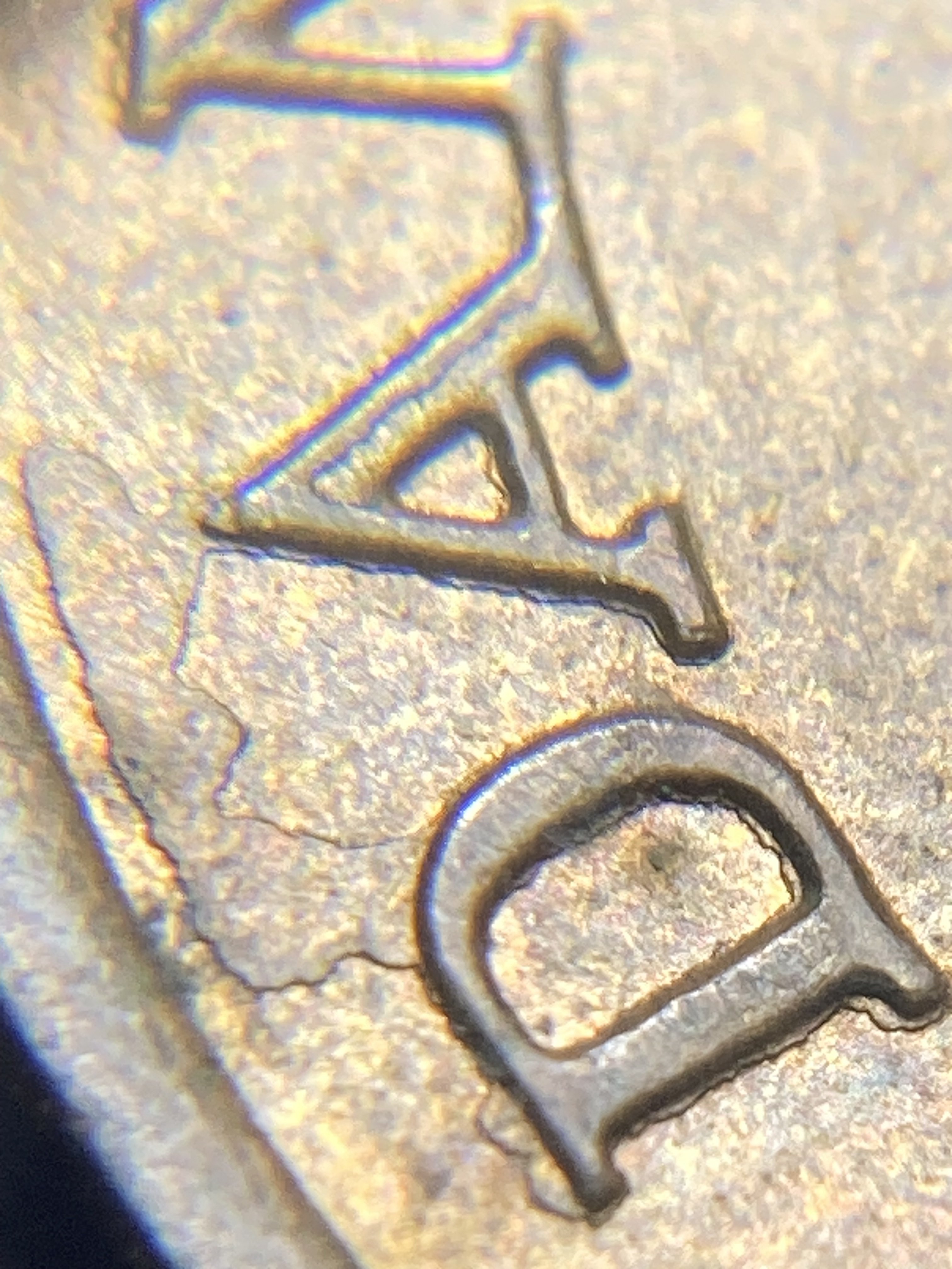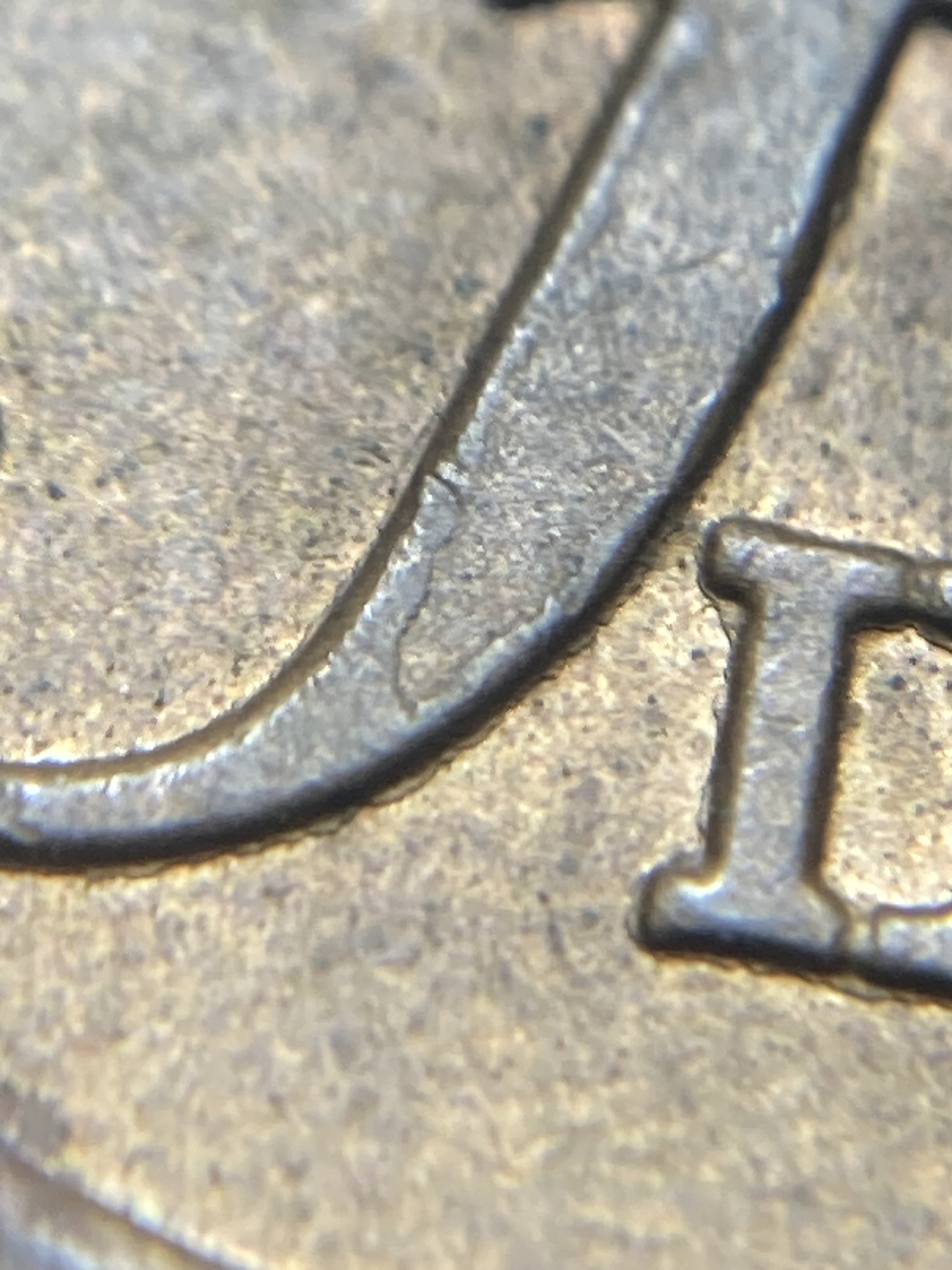 So what you need to do with these two coins, first of all, is try to disprove my hypothesis by getting some acetone, giving the coin a nice long soak, and seeing if the defects are still there or if they've dissolved away.