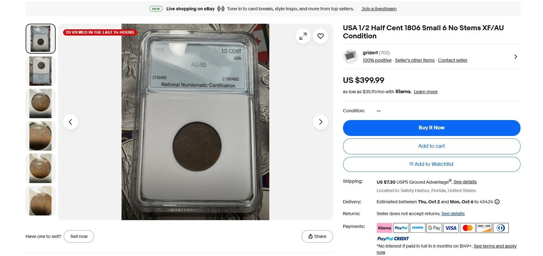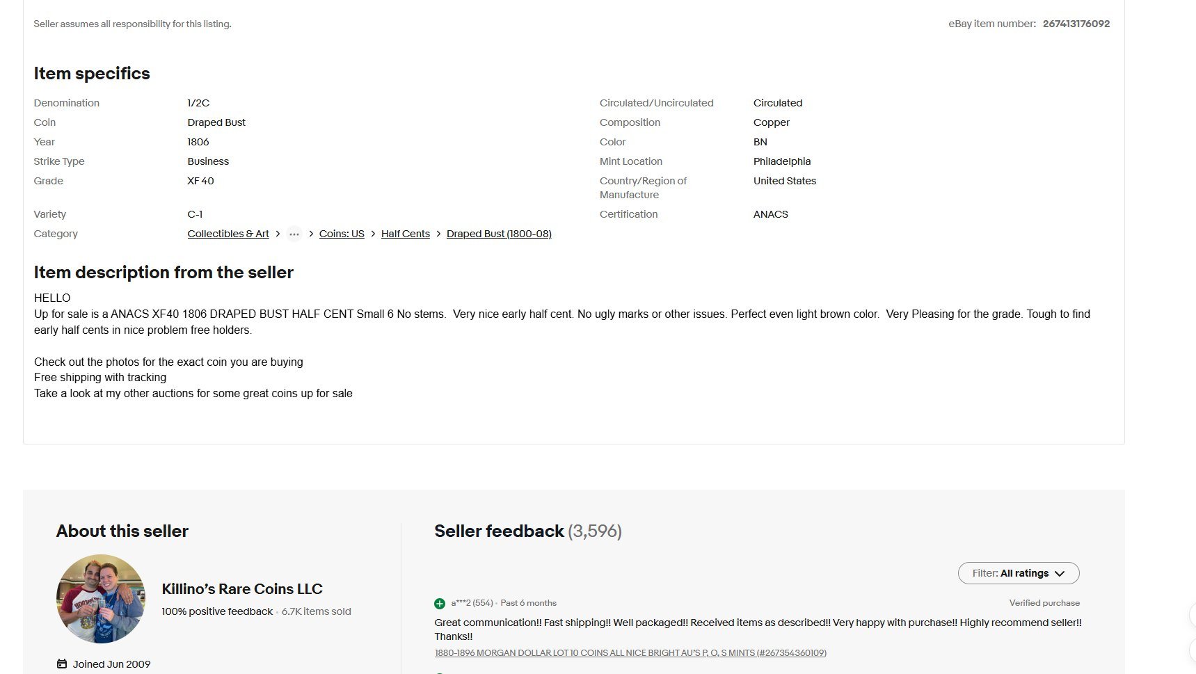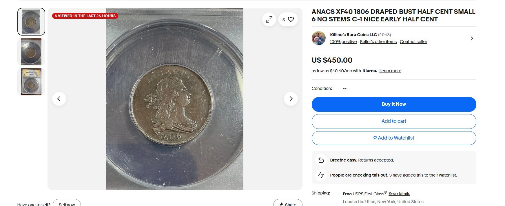 The 1796 large cent was proven to be struck over a cull large cent. The 1806 half cents (4 of them) were tested and had large amounts of zinc in them, possibly from an odd melting pot...