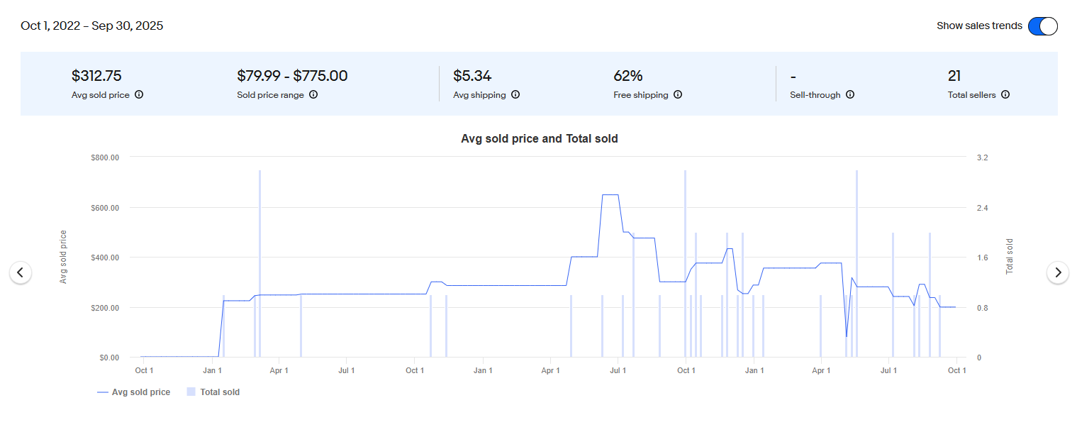 From personal knowledge, the last three sales (within 60 days or so) were around $200 (I'm not sure the $279 relisting of the "sold" $289 is legit). That's down from $250 and ignores the doubling in silver spot...