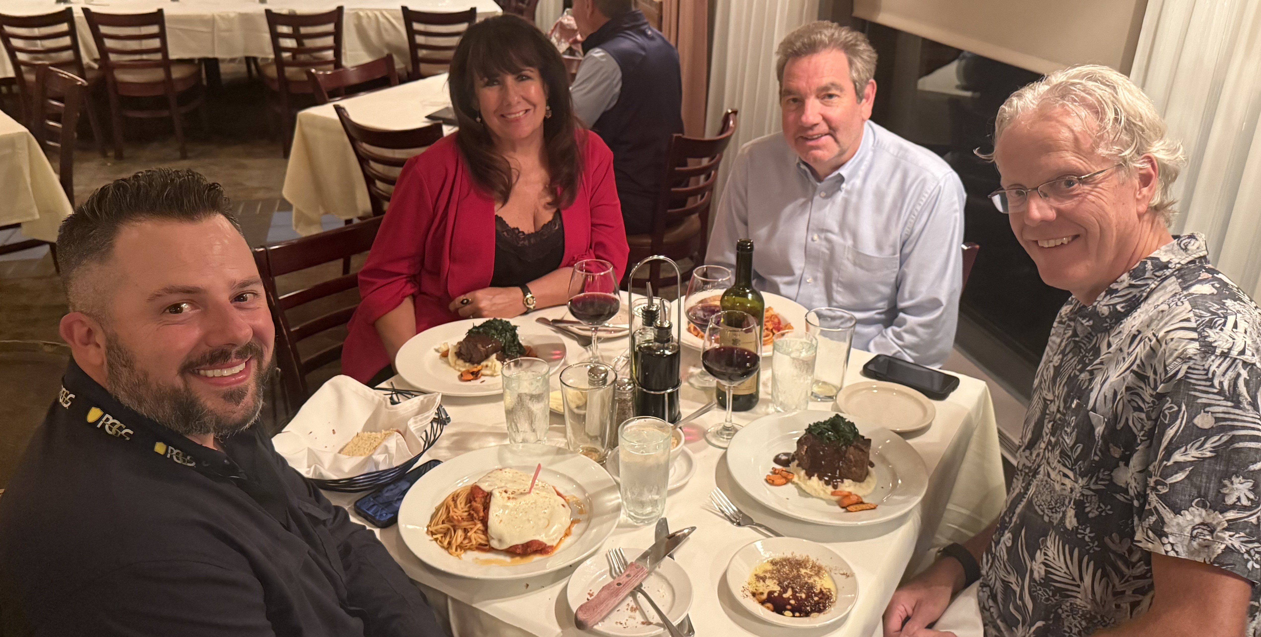 Friday night James Sego reserved a private room at Gibson's and organized a large group of us to have dinner together.