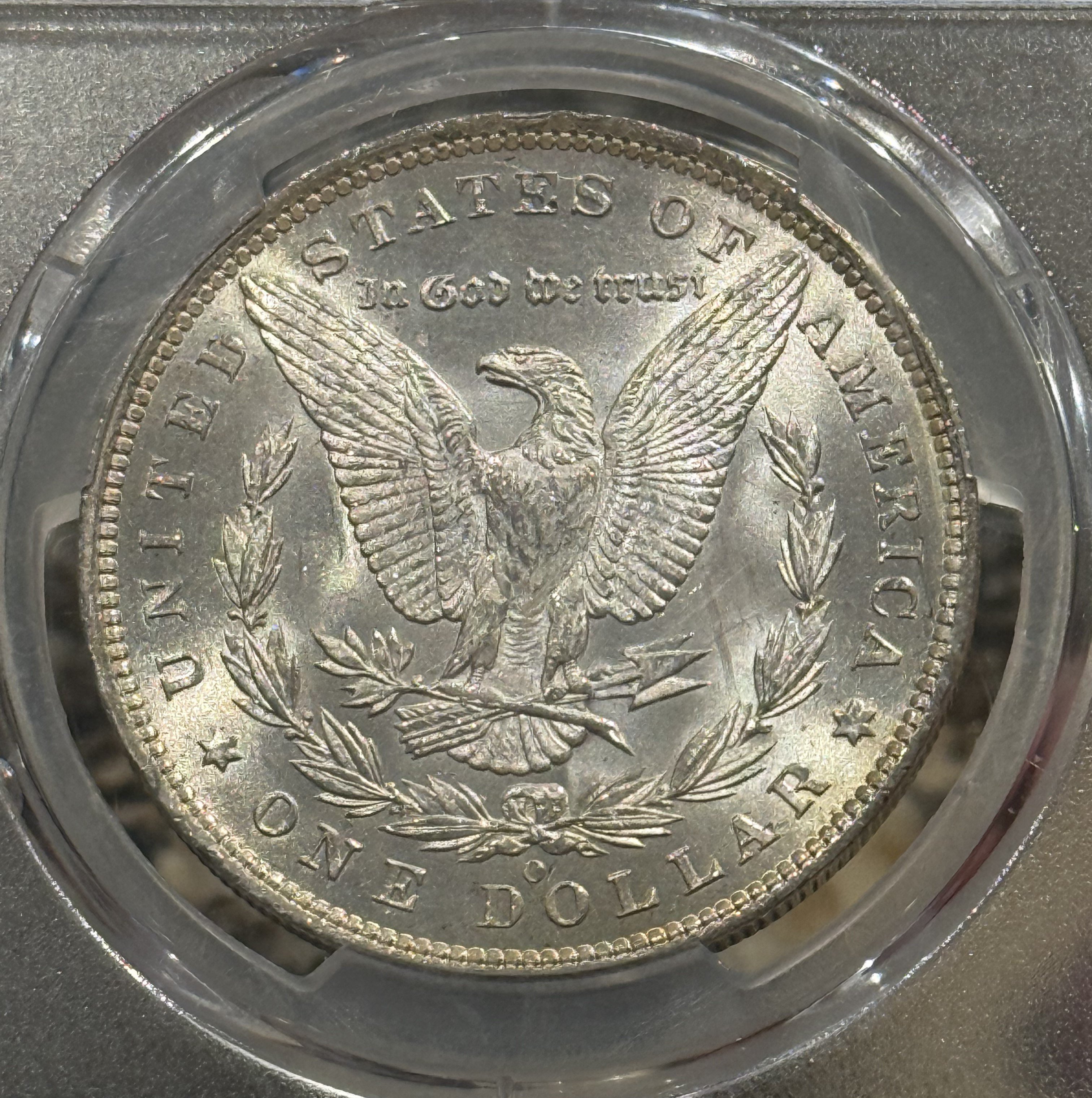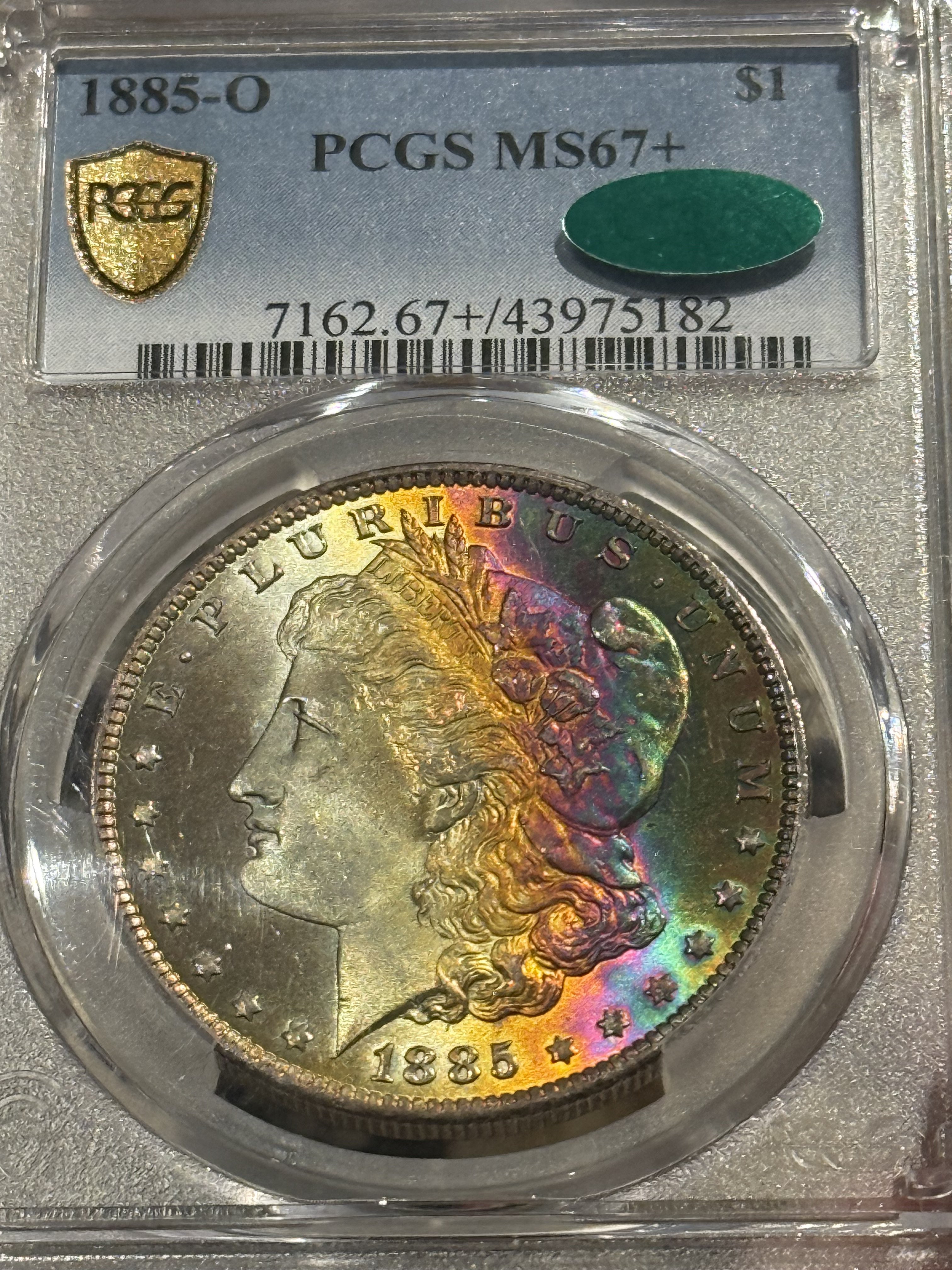 While we waited, Justin showed me this stunning toner 1885-O Morgan dollar in PCGS M S67+/CAC he had brought with him!