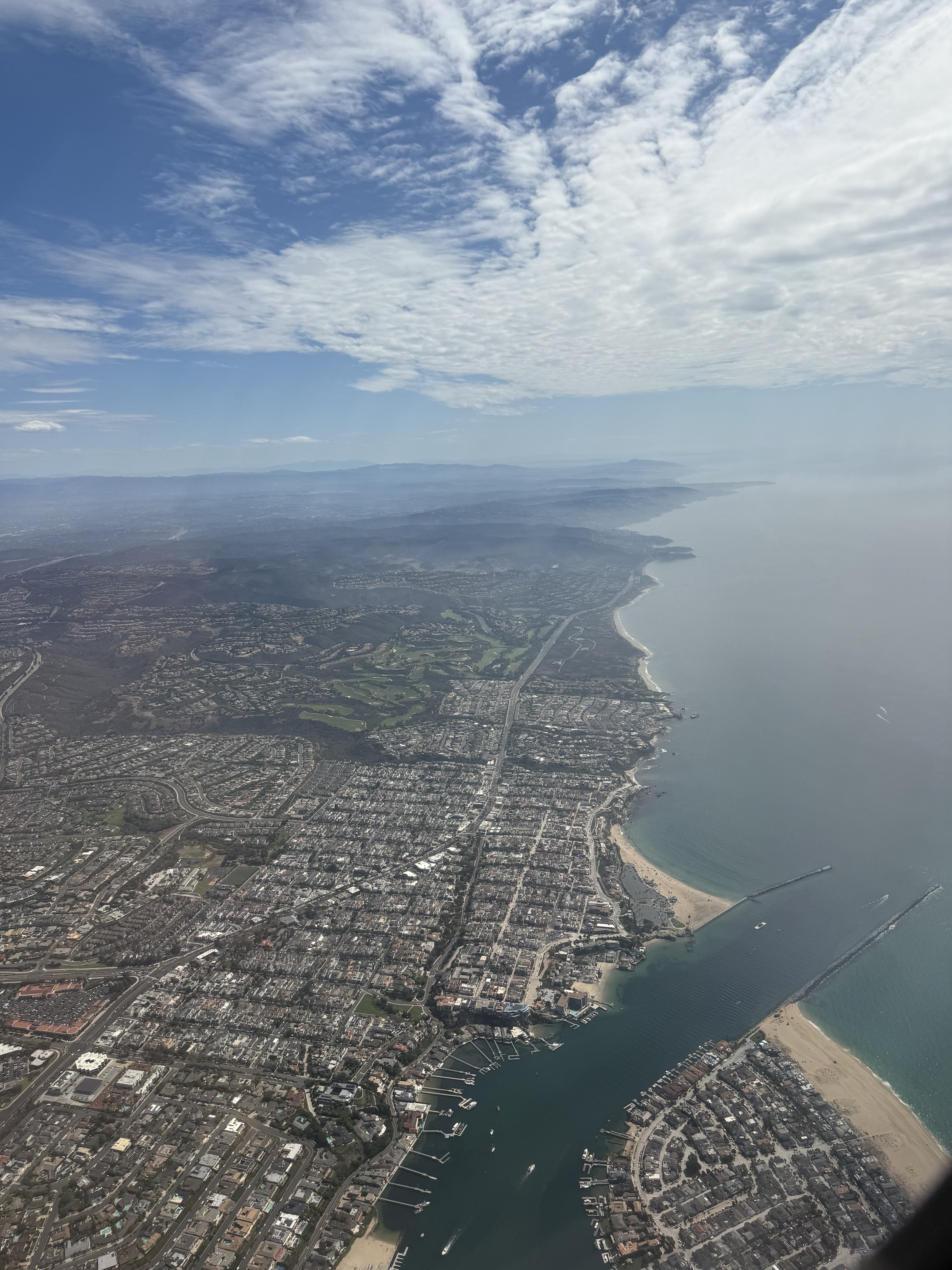 I was very happy as I settled into my seat for my flight from sunny OC to Chicago. And I always enjoy the view as we fly over Newport Beach with the pretty coastline and then turn around and head east over the hills.