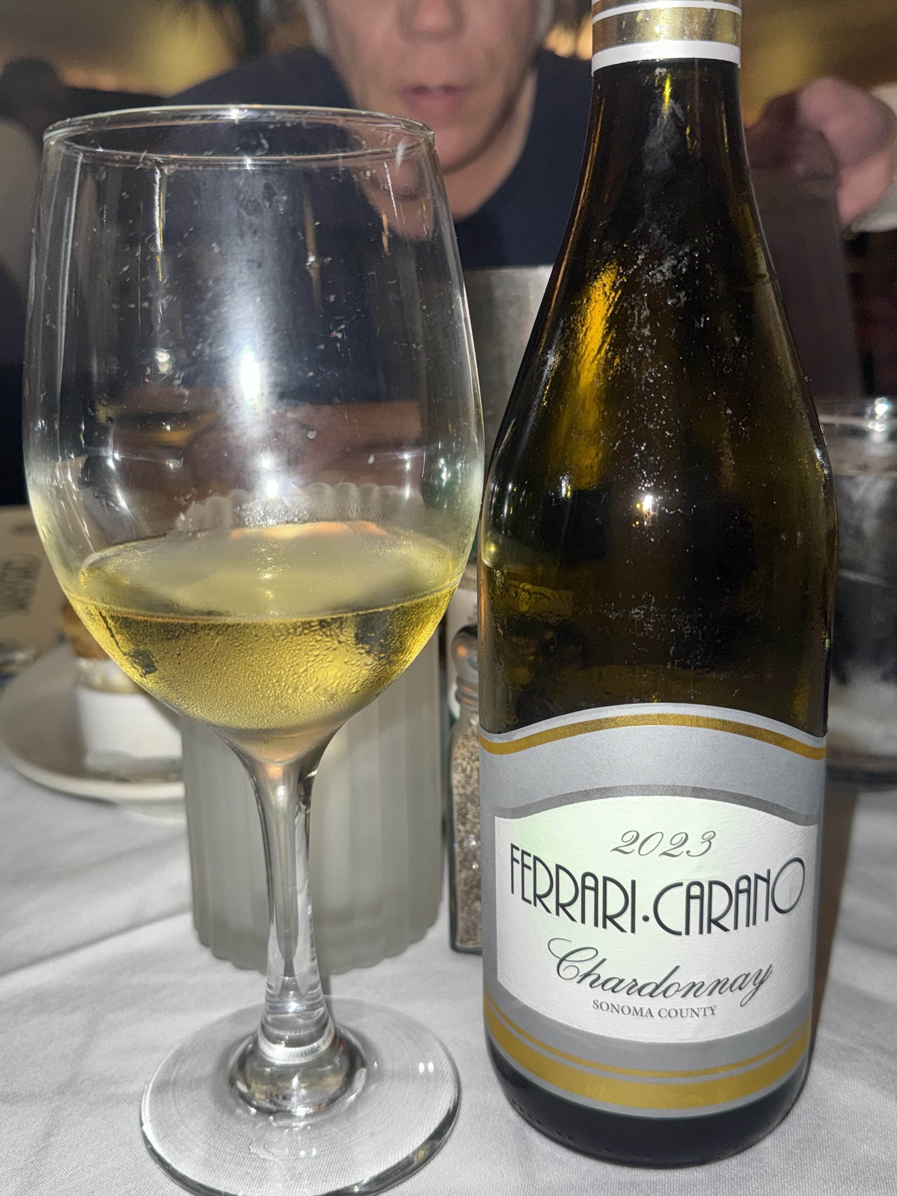 Dinner at Gibson's is always great and is one of the best steakhouses I've been to, and their wine is pretty great too! We started out with his Chardonnay, Ferrari Carona.