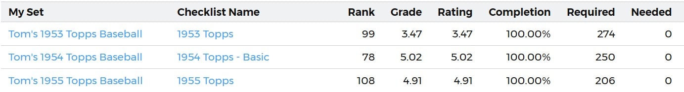 This set joins my 1954 Topps and 1955 Topps Registry sets as complete: