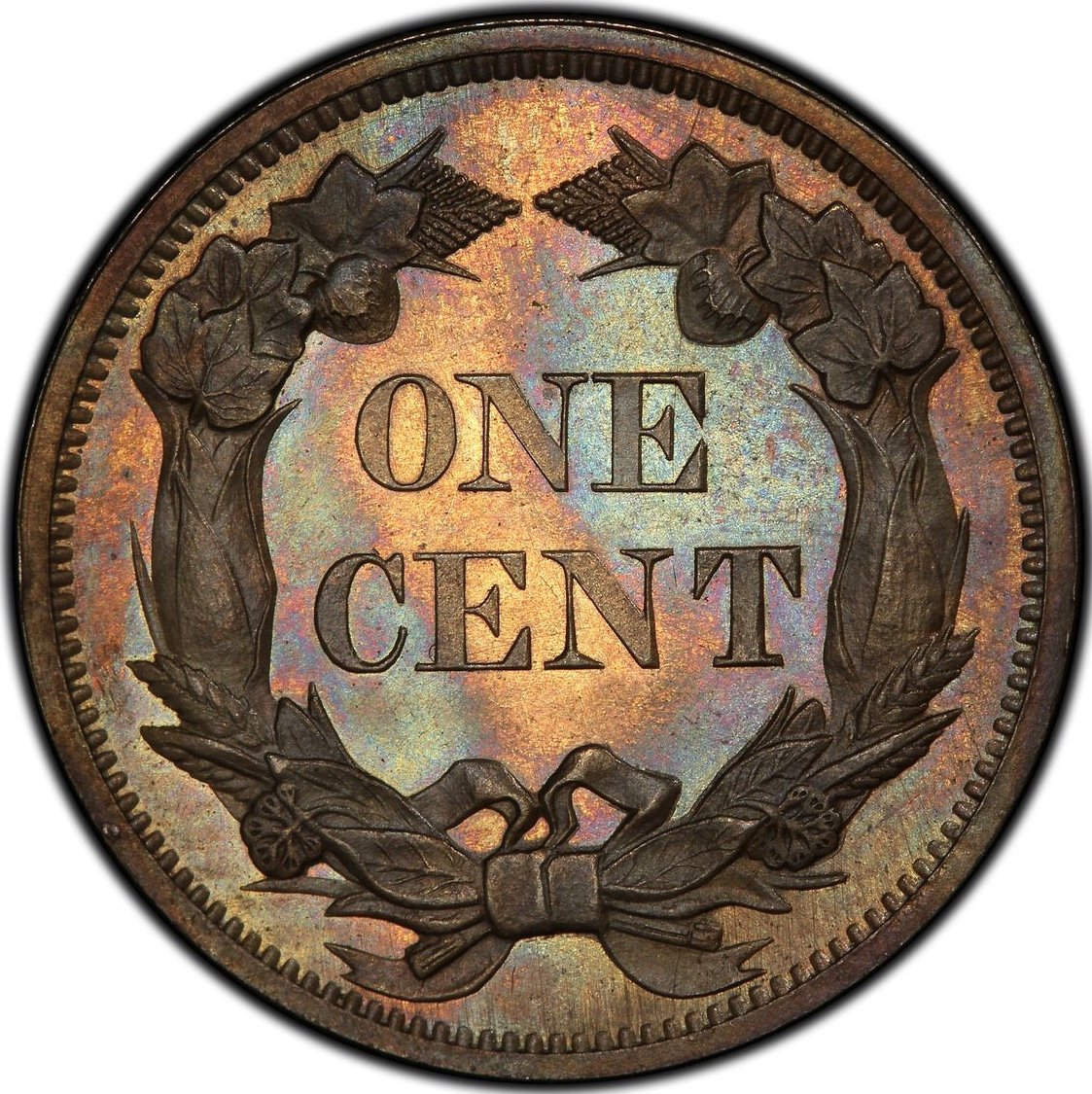 The Obverse is from the same die used to strike the circulating bronze issues designated as Snow-1; showing the repunching at upper serif of 1 and within loops of 8, also at the top of the 5 in date. The Reverse appears to be the reverse die used to strike circulating bronze cents of the date, specifically Snow-l; a raised die lump is seen on the N in ONE.