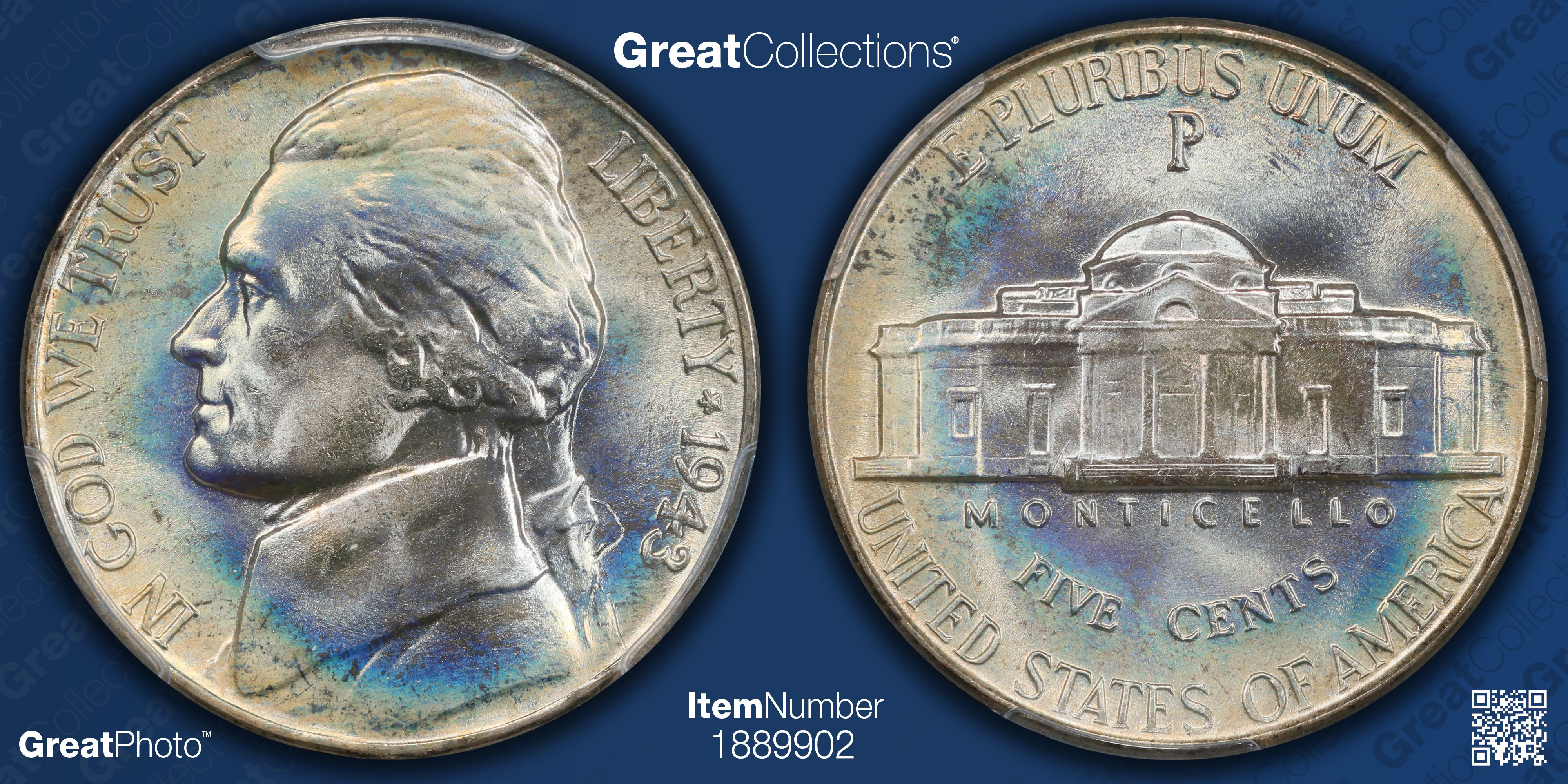 Gem copper, superb toned Jefferson nickels, and Superb Gem commemorative halves are among the highlights from the 100 coins in the Terry's Toners Collection auction at GreatCollections.com ending on Sunday, October 12. Click this link to see them all: