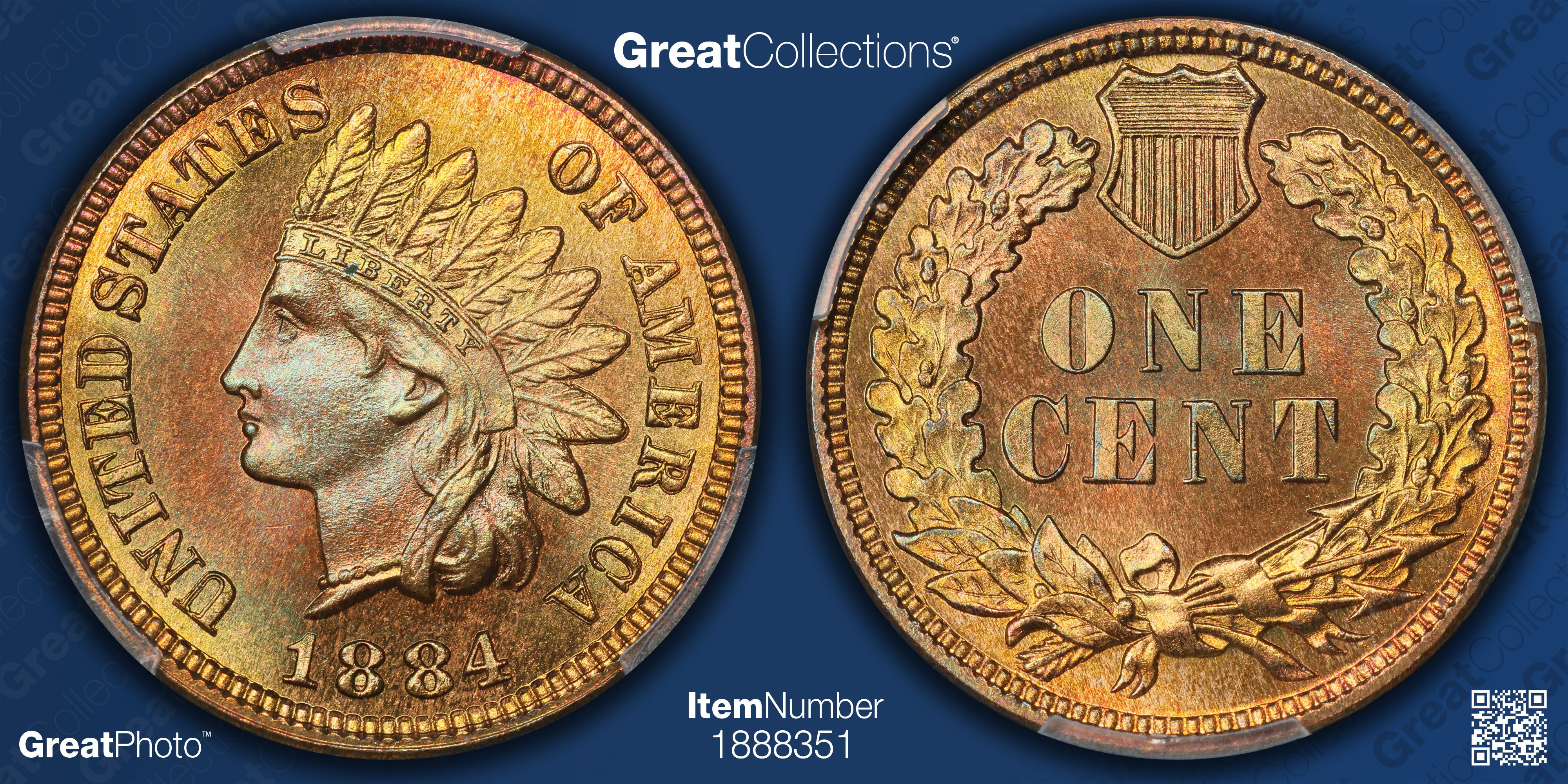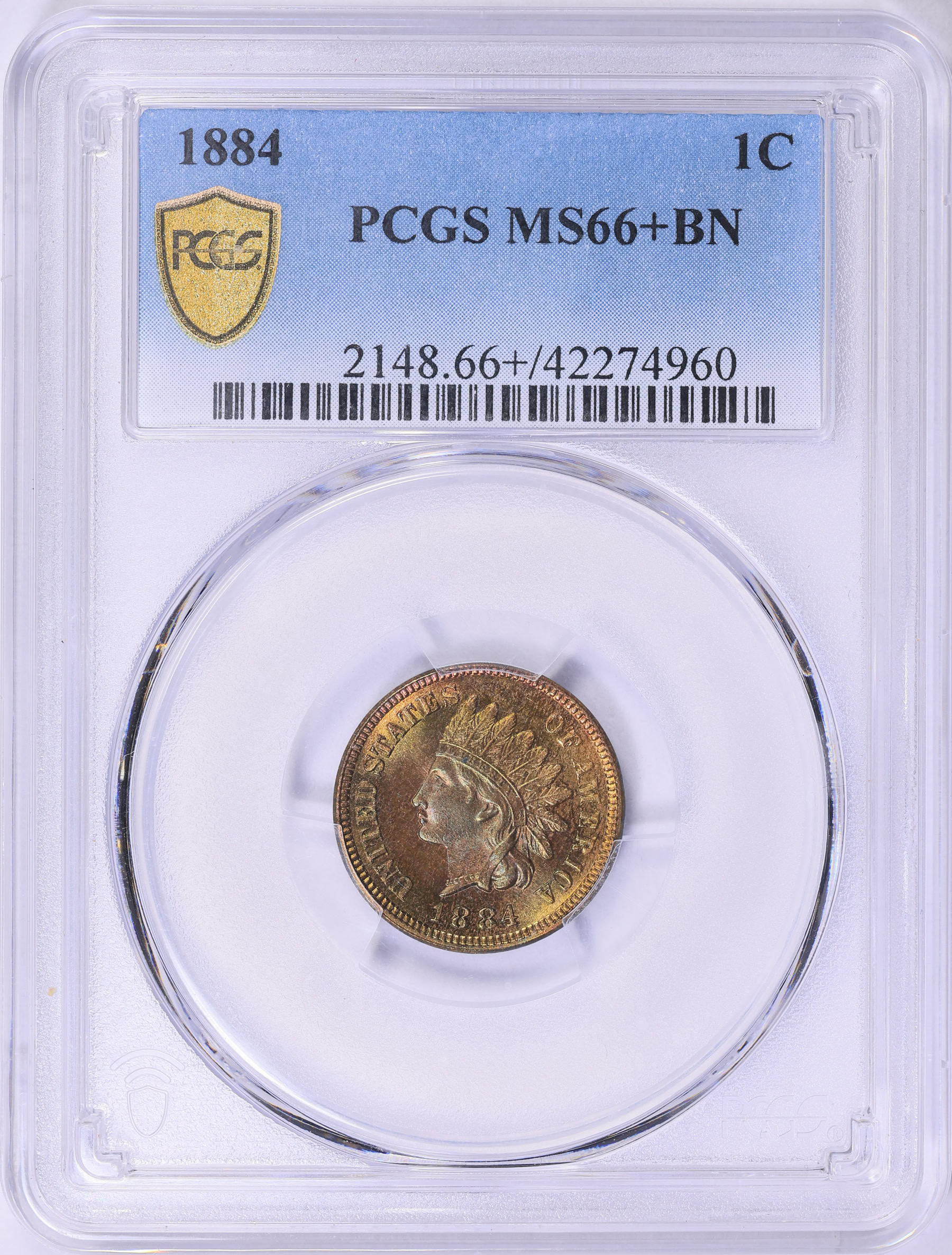 1884 Indian Cent MS66+BN PCGS, Hammered Strike