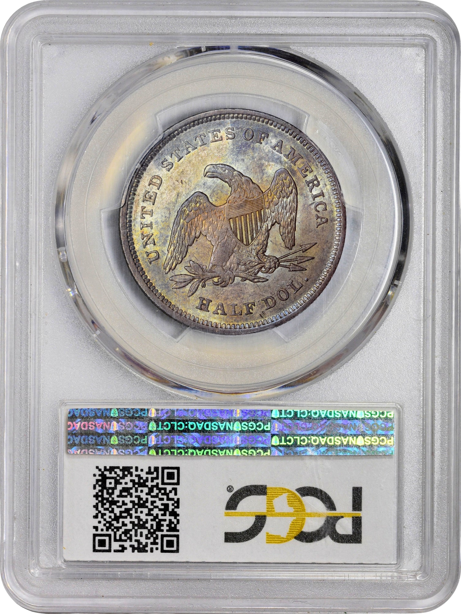 This 1839 Liberty Seated Half Dollar, certified PCGS MS63+ hails with the coveted Gold CAC approval. An exceptional representative of both the first-year issue and the elusive No Drapery subtype, the 1839 No Drapery is not only a one-year subtype, but also marks the introduction of the denomination into the Seated Liberty design family—making this issue both historically pivotal and visually elite within 19th-century numismatics, and is the Key Date to the series. This example features original, clean surfaces with vibrant, natural toning in shades of silver-gray, gold, blue, and copper. It shows strong luster and detailed toning around Liberty’s portrait and the stars. The reverse side displays rich blue tones and deep coloration beneath the eagle, highlighting its originality and visual depth. A prize for the advanced collector. Several No Drapery CAC have sold that make up the price - A dark and relatively unattractive MS64 PCGS CAC for $66,000 04/25 HA and a nicer MS64 NGC CAC for $75,000 11/19 ST, NGC MS65 today non-CAC should be worth about $100,000 today and MS65 PCGS NON-CAC are offered today on the market for $160,000-$175,000. There are no CAC examples finer than the base MS64, and this example is clearly in the census for one of the finest. A MS64+ PCGS CAC today should sell for close to a $100,000.