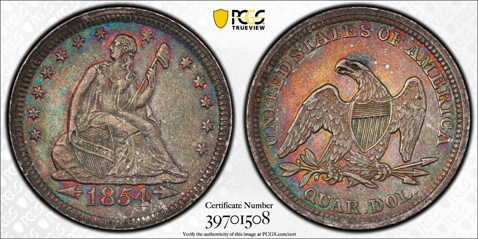 There was a period where I had four POP 1's in my type set and I had considered making it a theme of the set. With passage of time, two of the four ceased to be POP 1, and along with it, the plans to make it a theme of my set. The 13-D was another cherrypick from an unattributed holder, again tipped off by a fellow board member, and stayed POP 1 until recently. The 1854 w/arrows is no longer mine, and was subsequently featured in a PCGS Rare Coin Market article discussing the + grades.