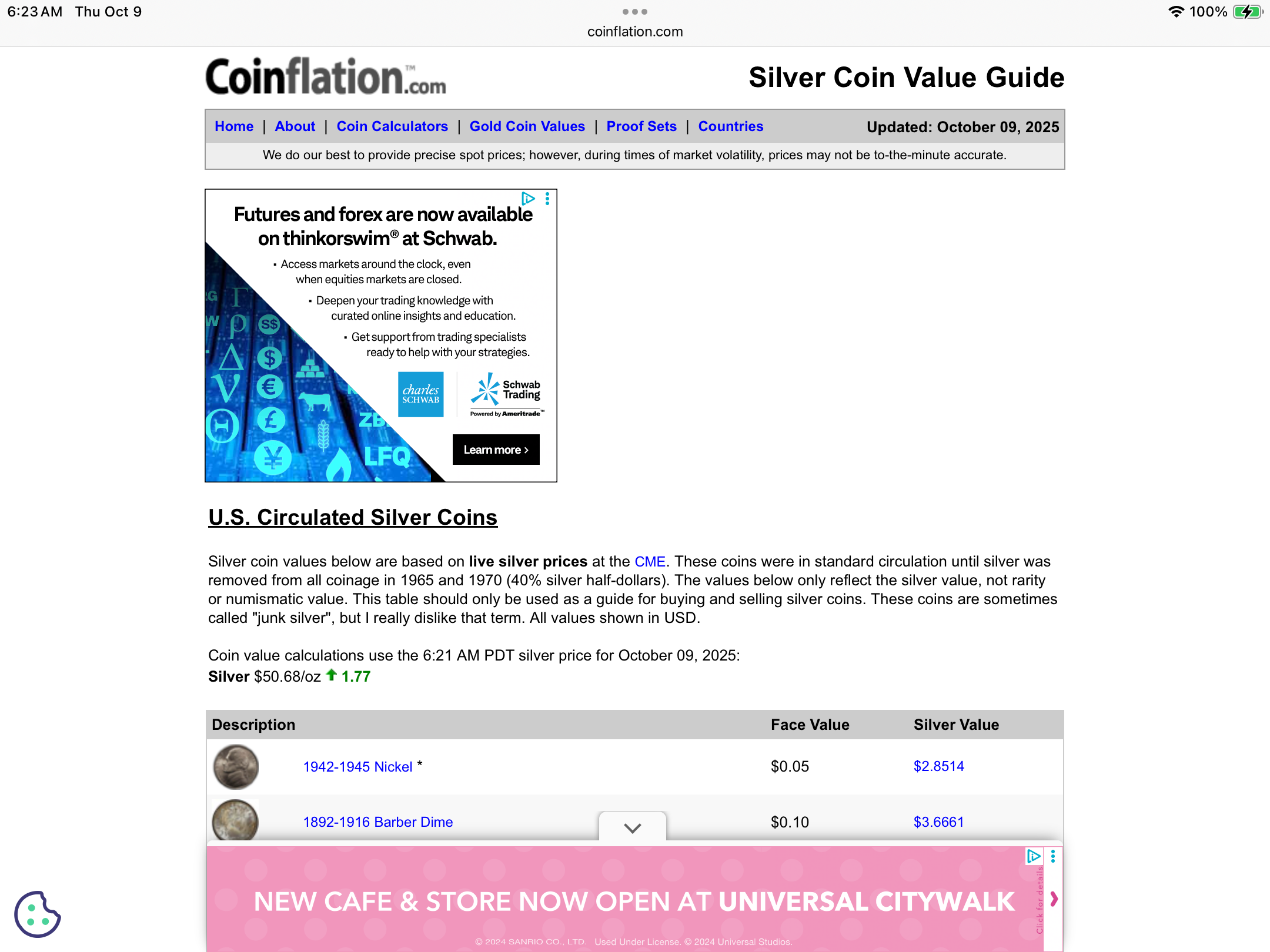 • Current Melt Value: 10.125 × $50.68=$513.14 based on silver at $50.68 per oz)