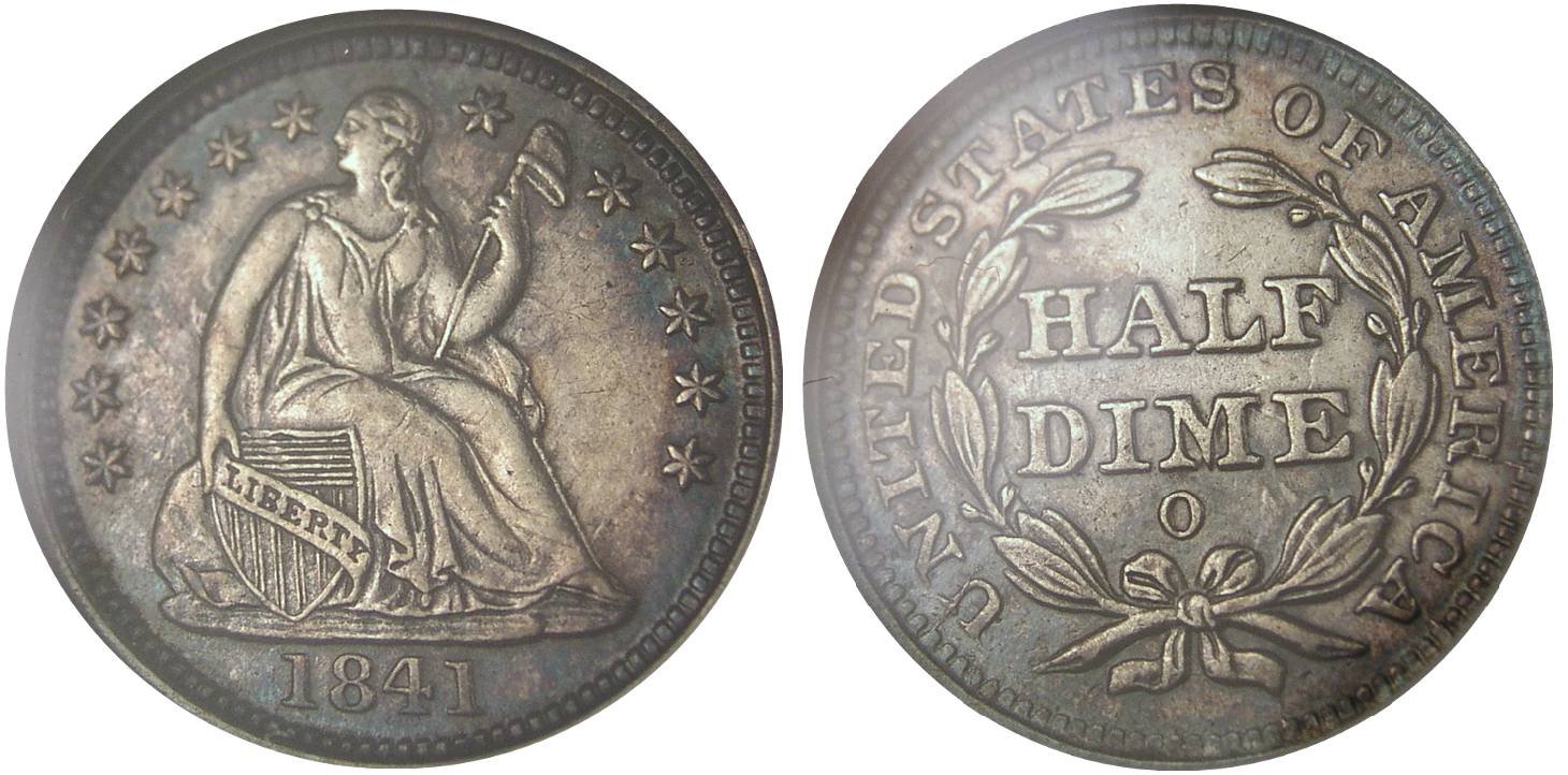 FYI, your 1841-O half dime is a V-3b (R-3), based on the reverse die cracks at U(W side) A1 S2 R A3.