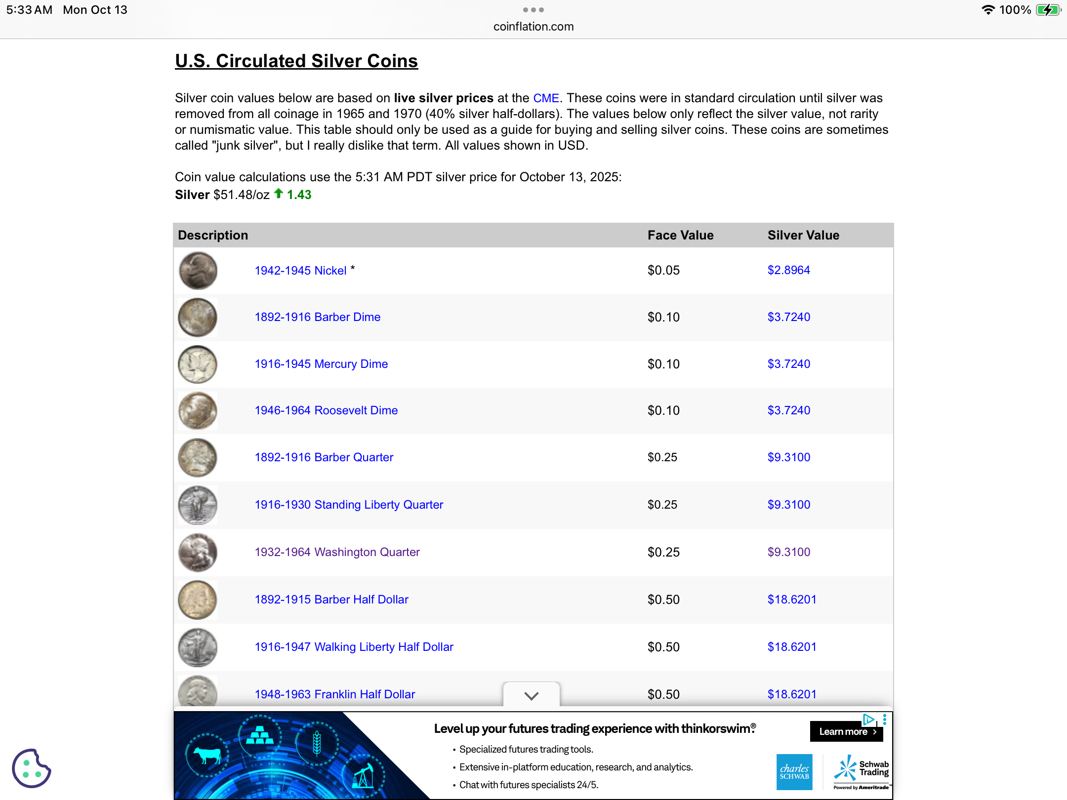 • Current Melt Value: 10.125 × $51.48=$521.24 (based on silver at $51.48 per oz)