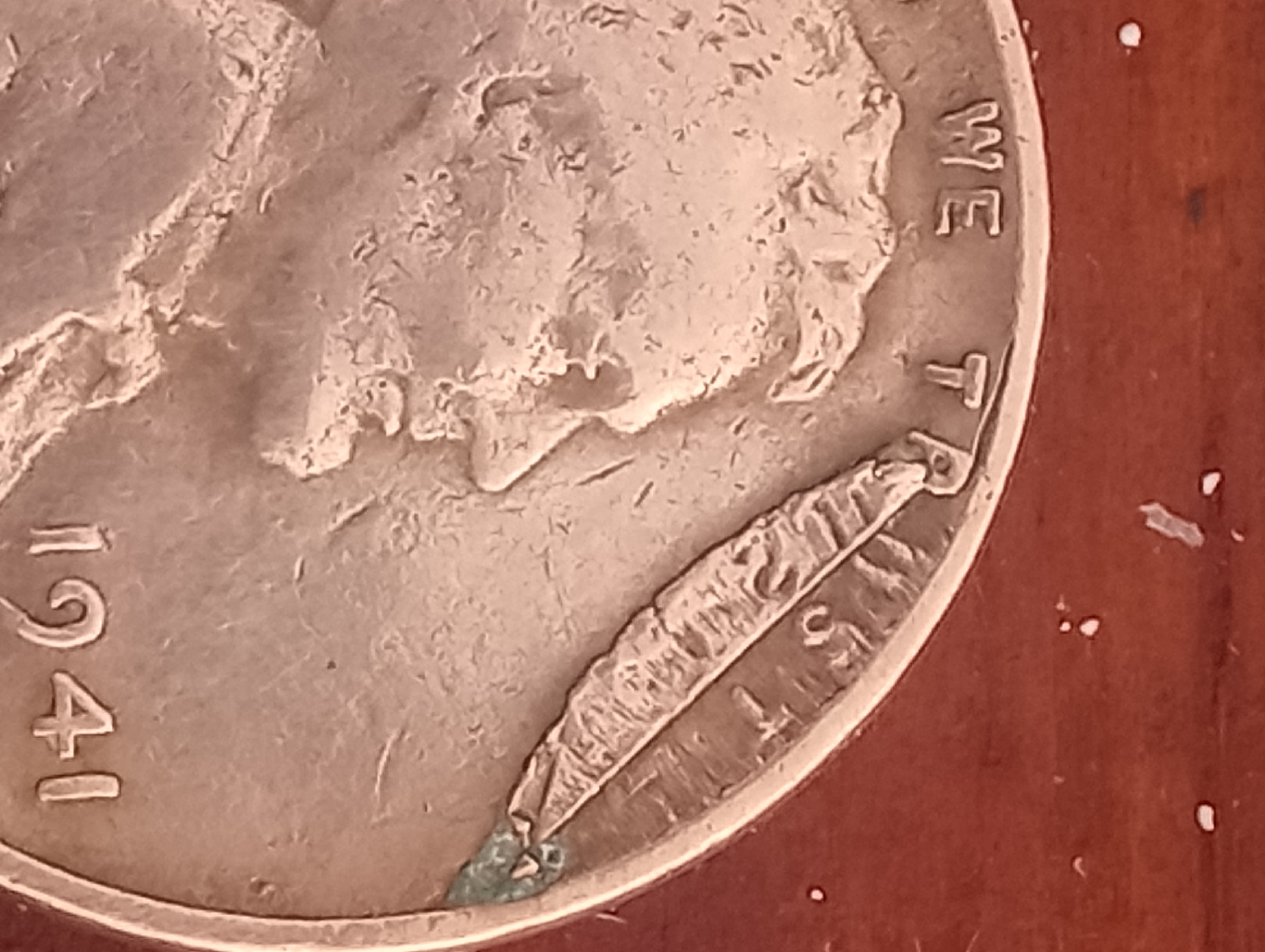 I recently came across a 1941 Lincoln Wheat Cent that’s been in my family for years. It has a clear lamination error near the word “TRUST,” but what really caught my eye is something I’ve never seen before: