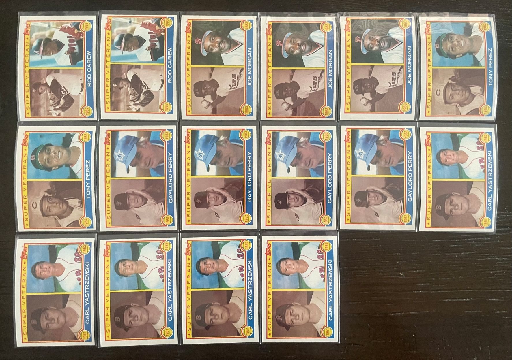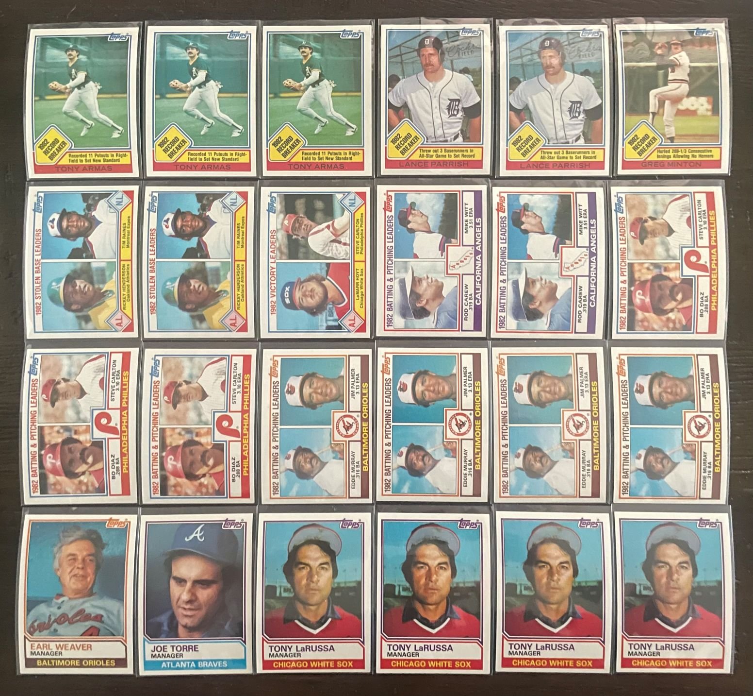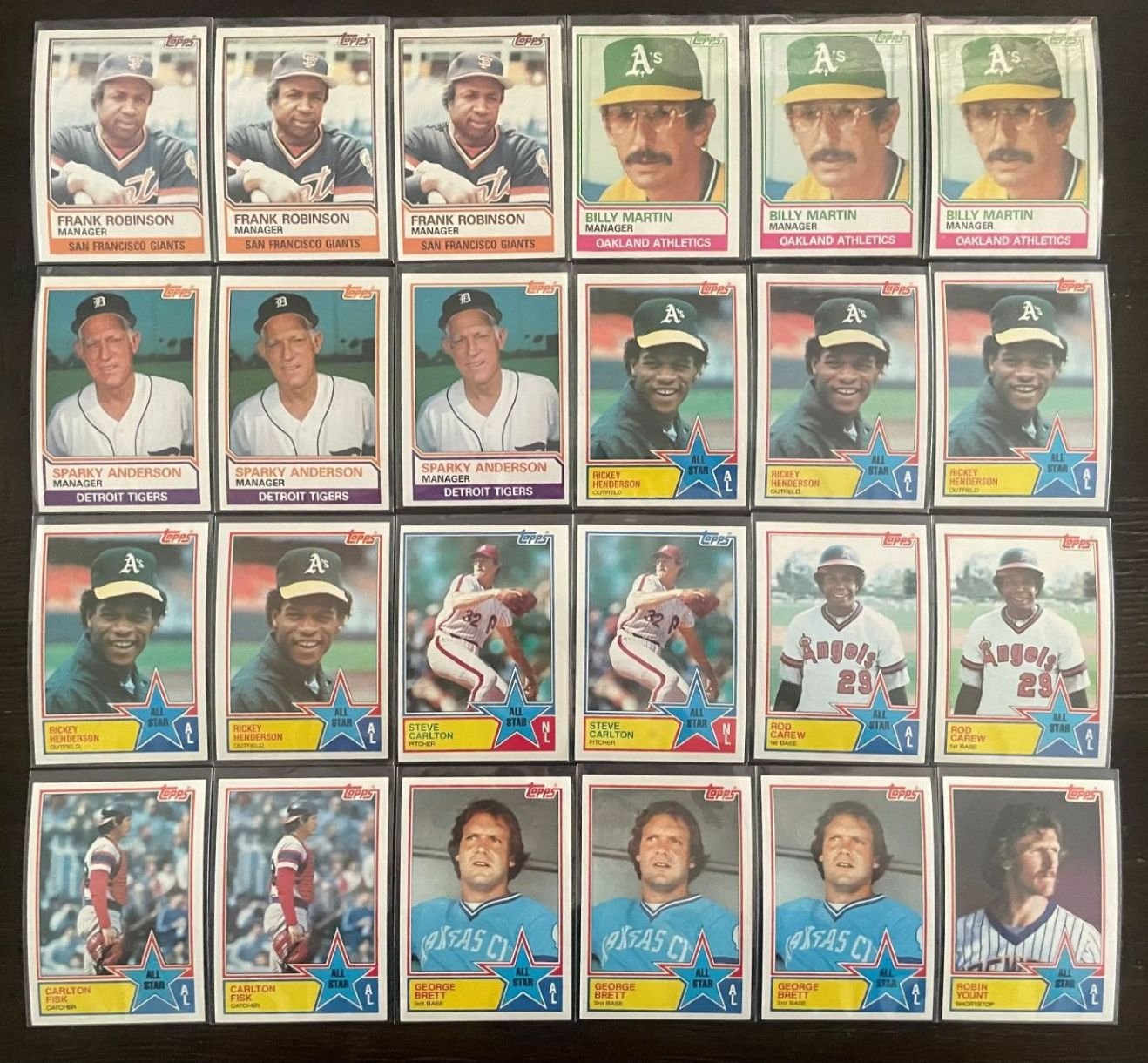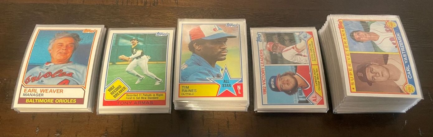 For sale is this lot of 112 1983 Topps cards. They are all Record Breaker, Leader, All Star, Manager, and Super Veteran cards. Most all are stars/hall of famers. Condition is great throughout, near mint outside of some centering issues. Some have a slight bend to them.