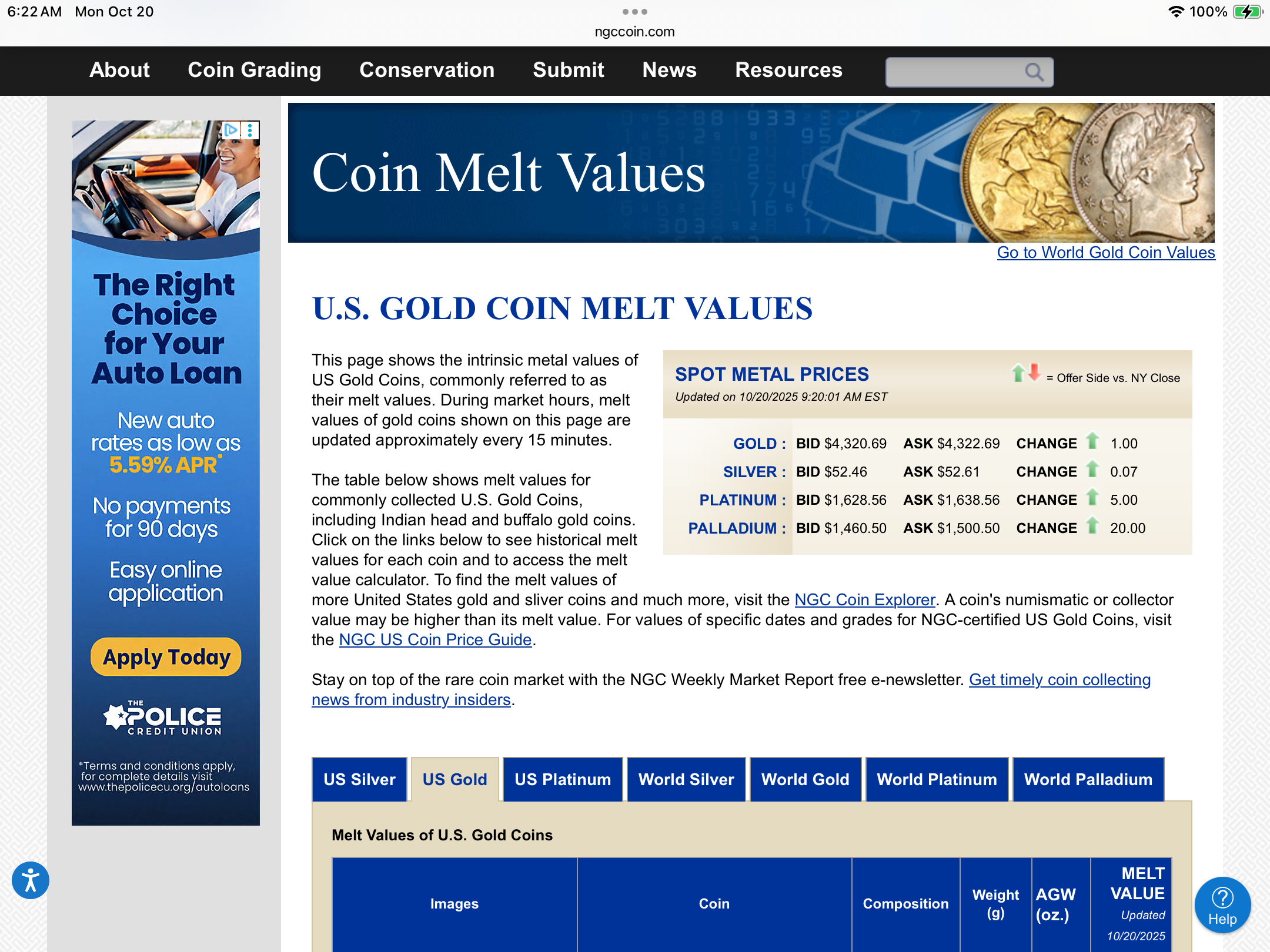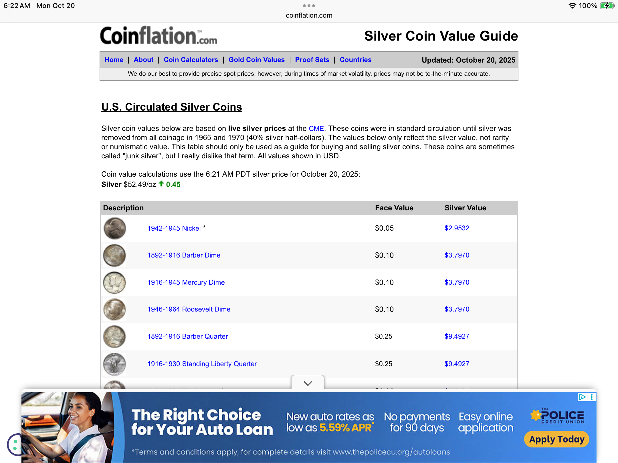 • Current Melt Value: 14.464*$52.49=$759.22 (based on silver at $52.49per oz)