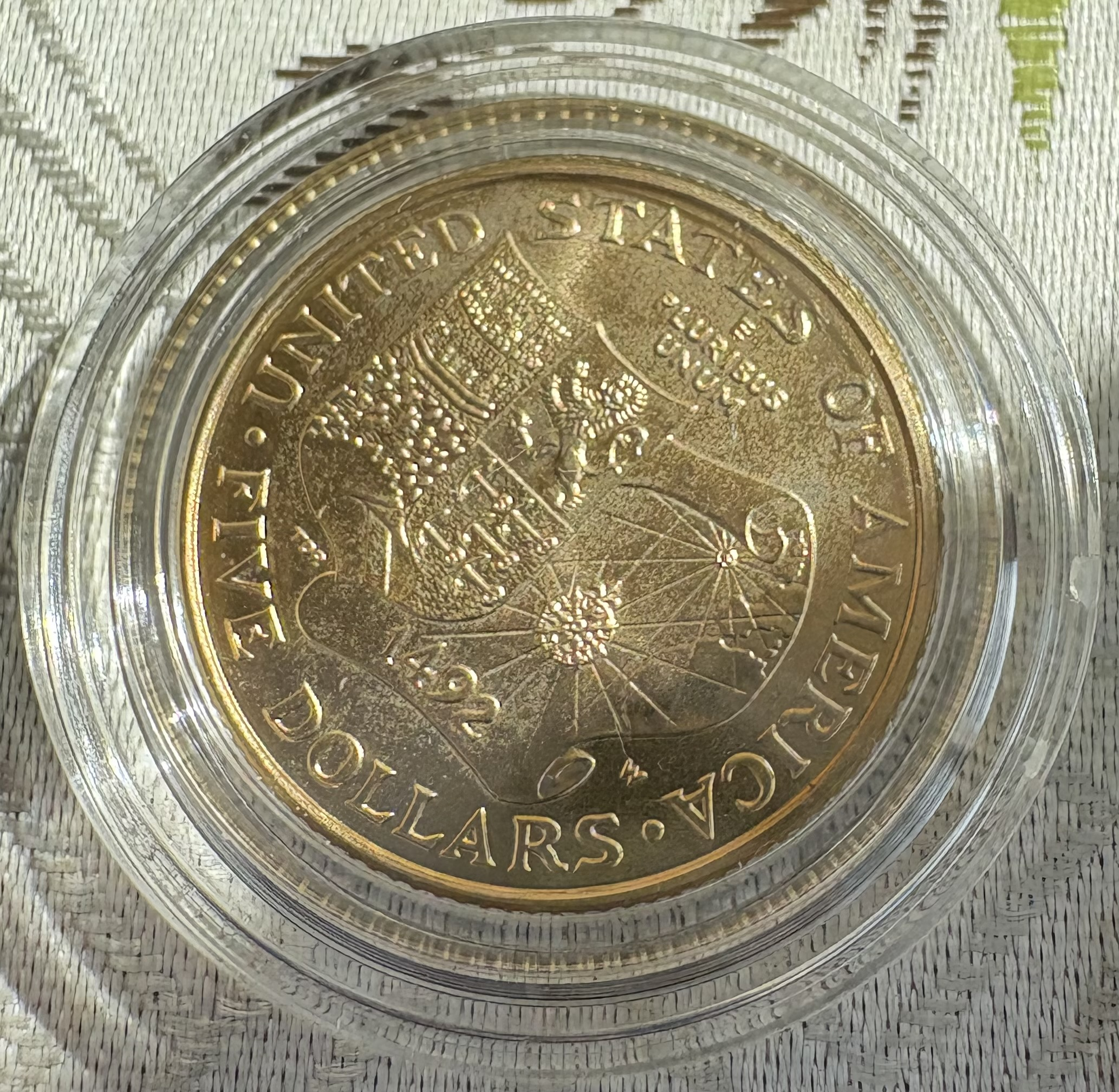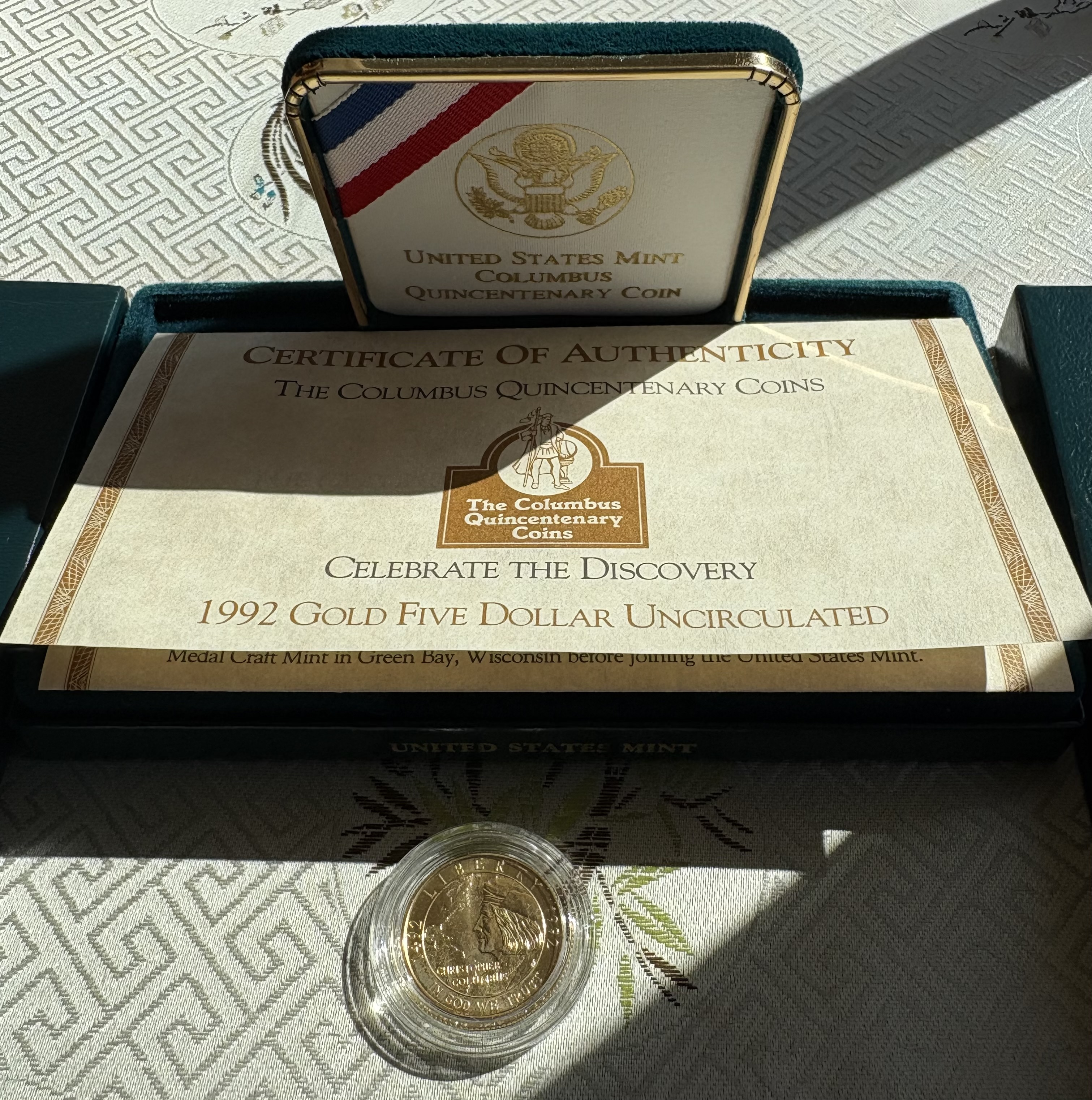 Item : 1992 Columbus Gold Five Dollar Uncirculated with Original Box and Certificate.