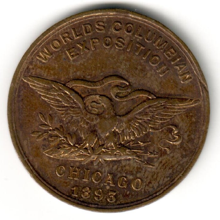 I have, what I am calling, a commemorative coin from the 1893 Worlds Columbian Exposition in Chicago. It is about 1 1/8 inches in diameter. I found this coin while cleaning out my dad's possessions. I did a Google image search but only came up with one hit which yielded no useful information. Has anyone seen this coin before? There is a half dollar that was minted as part of a fundraiser at that time but my coin is different than that one. Could it have been sold as a souvenir at the event?