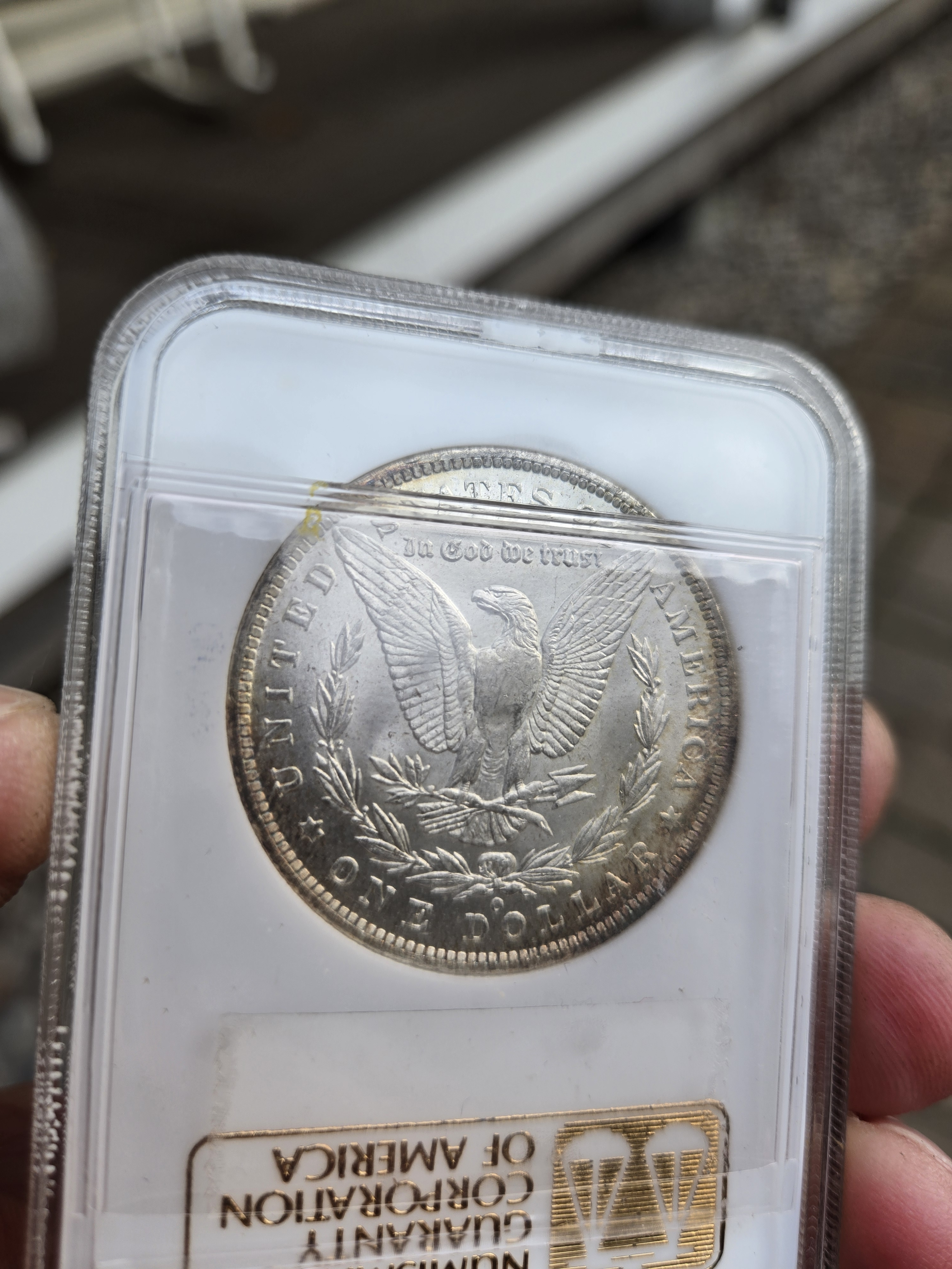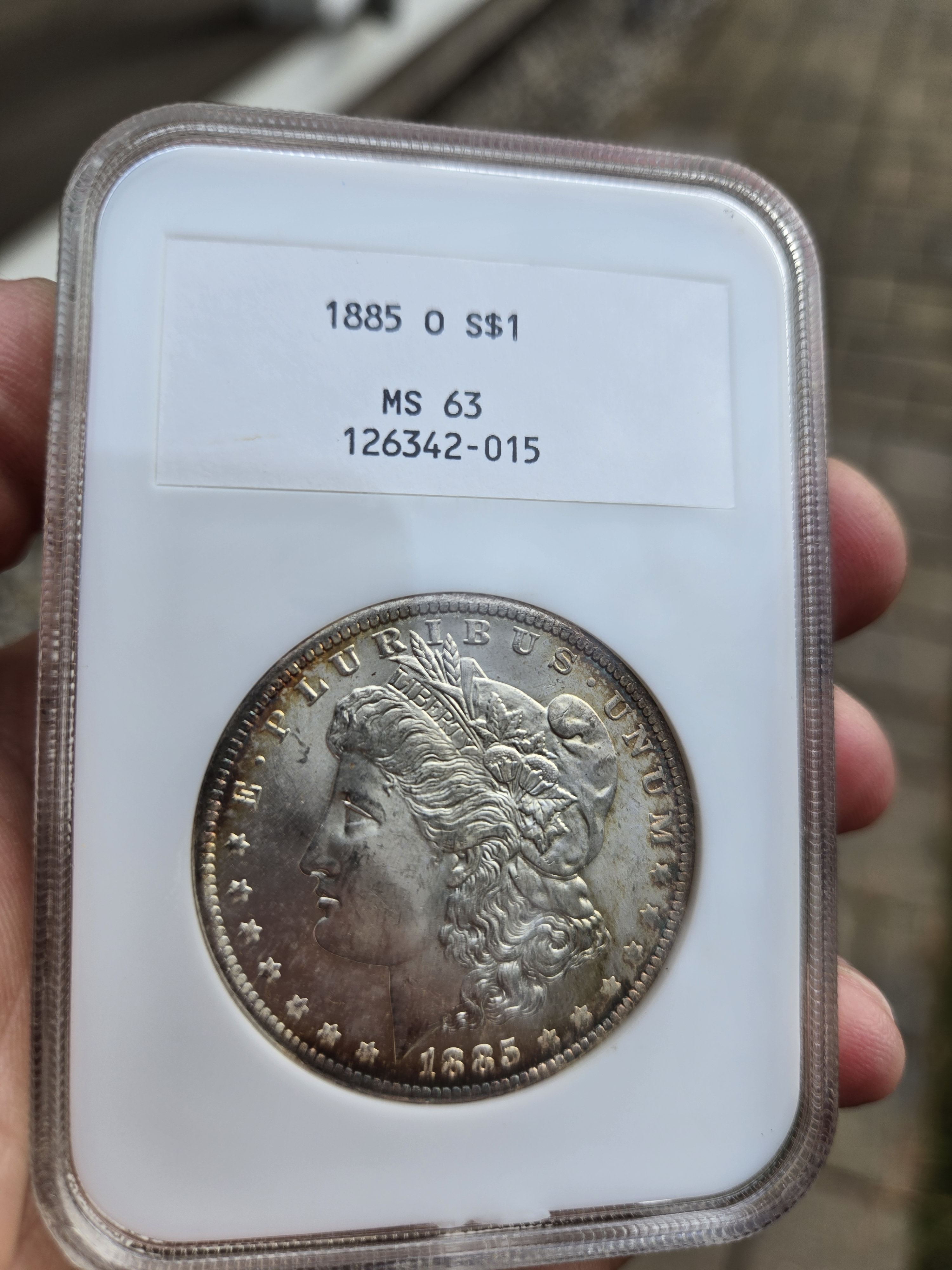 NGC white label says it all. Hasent been to cac but if not sold here in the next week I'll be sending it off. The 85O morgan looks graded correct to these eyes so I would think it would get a green bean. Has an older Heritage label attached to the reverse. I believe this is the 2.1 with no shadow. Asking $1400 or BO