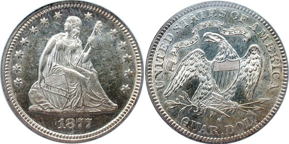 NGC MS64 1877-S WB-6 "Weird F" (R7) - this is the "top pop" example of this rare DM by two grades. It was purchased by deducting the price from the balance of my coin sales. All I had to say is, "Yes, I want it" and it was delivered to my front door in three days.