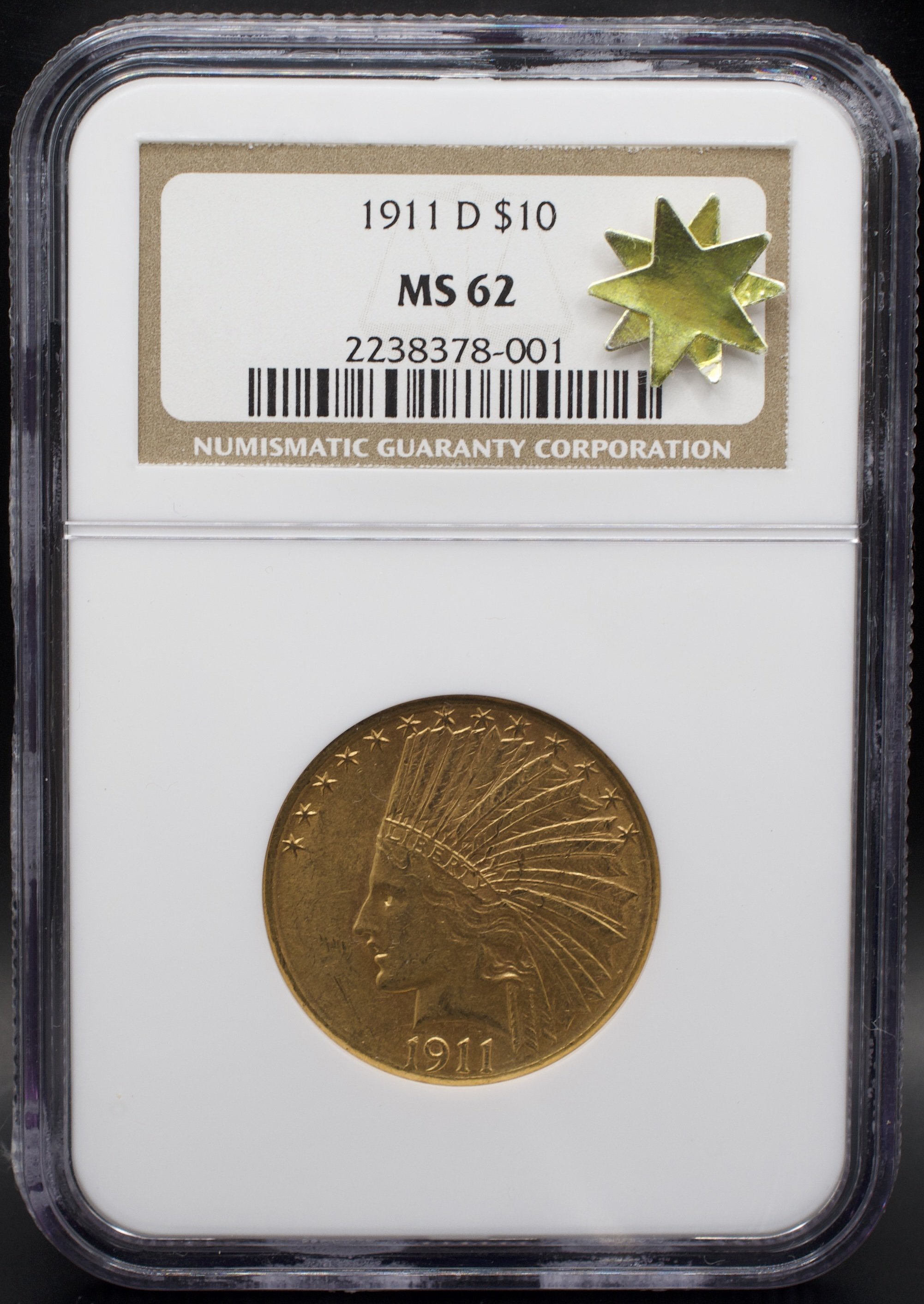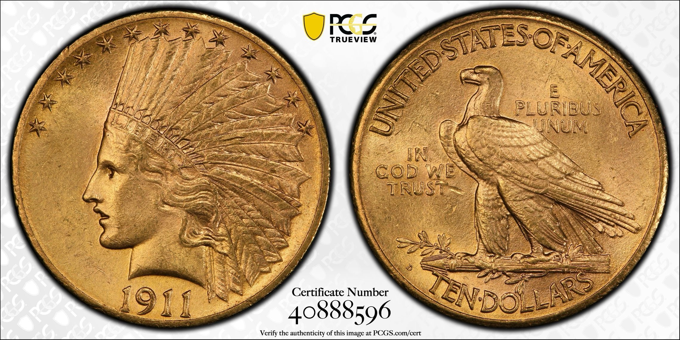 1911-D $10 Indian ~25° Counterclockwise Rotated Die