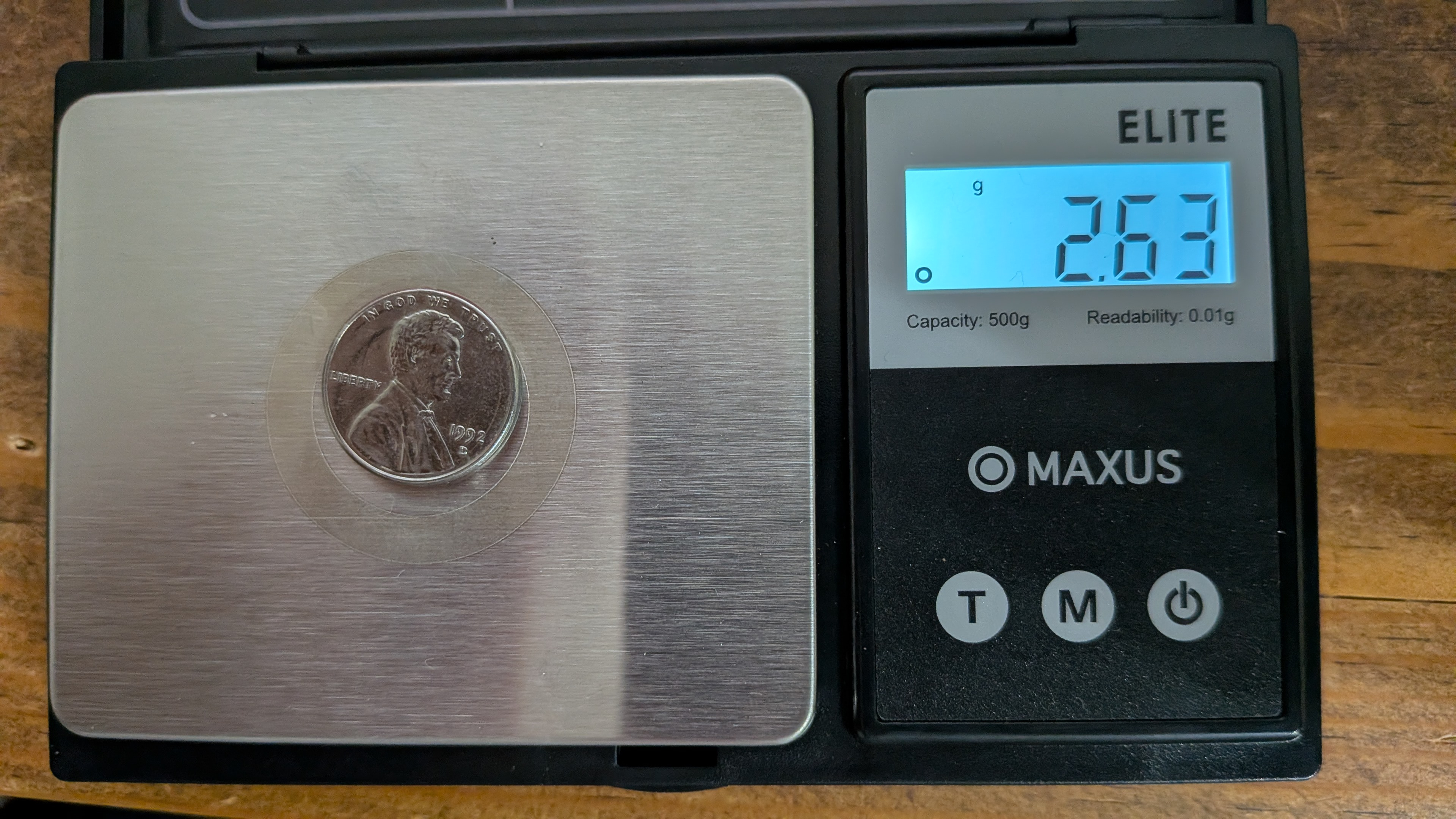 It might show underweight but not by very much, as was written the copper platting is very thin and doesn't weigh very much. But this is not what the zinc core looks like, depending on what this was plated with it might have some reaction to a magnet.