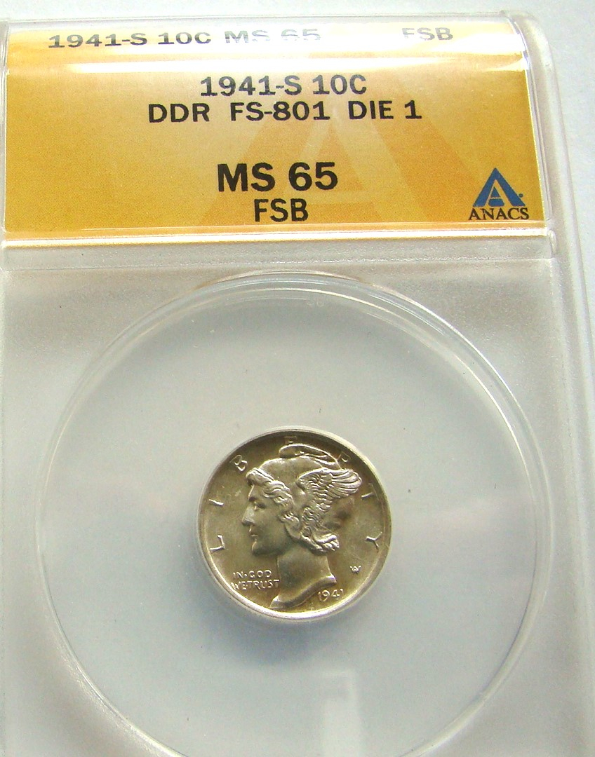 1941-s DDR Mercury DimeMS-65 FSB FS 801 Die 1 $70