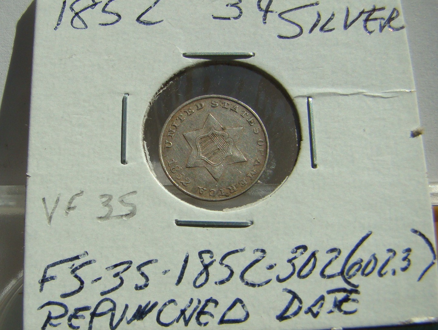 1852 3 cent silver Repunched Date$130