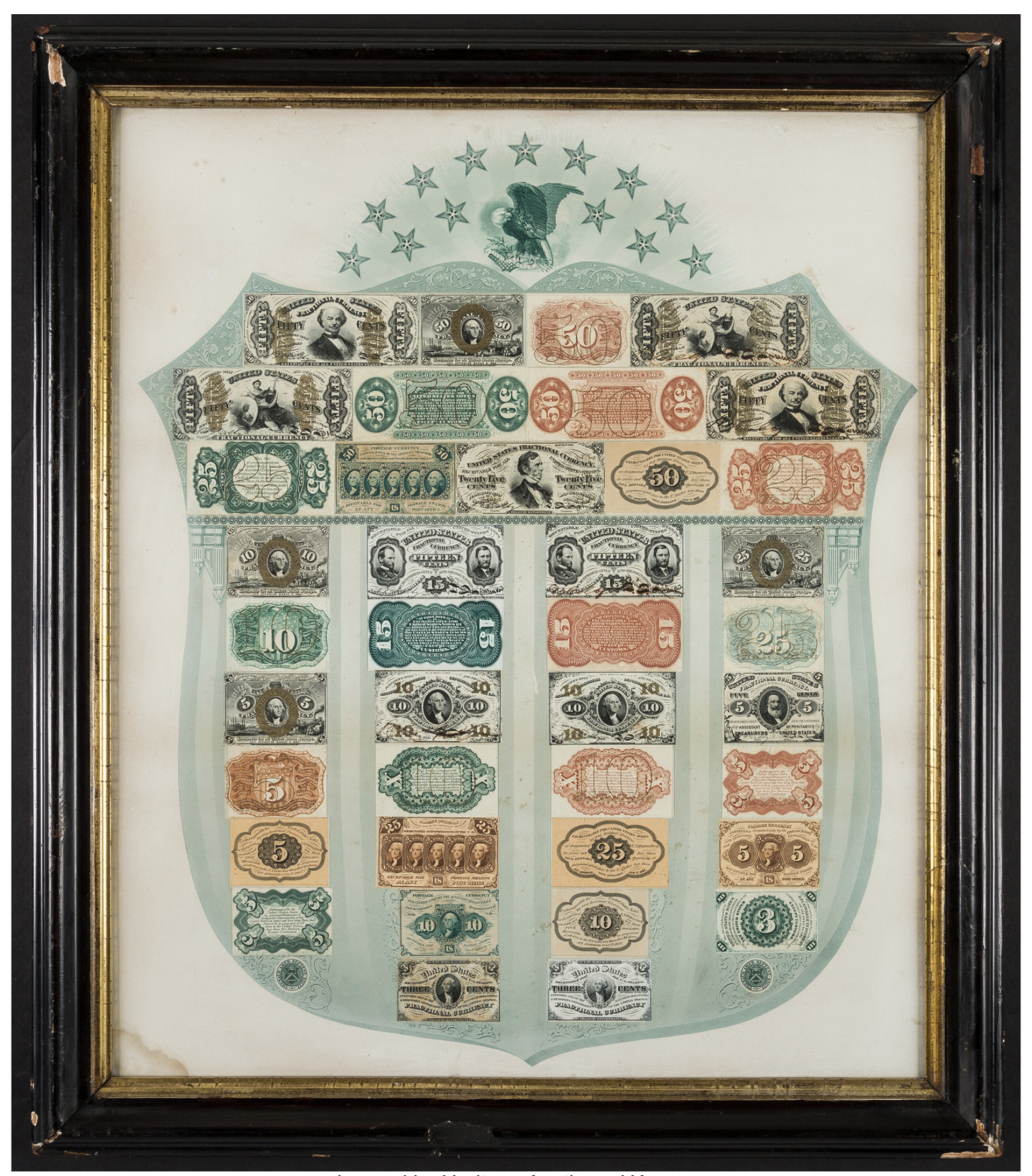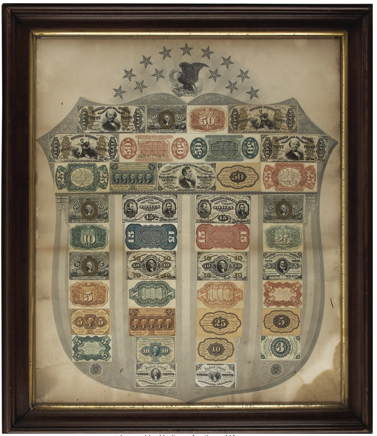 A local shop got one of these fractional currency shields from a customer. I've never seen these before, how would you market them since the proofs are held in the "shield"?