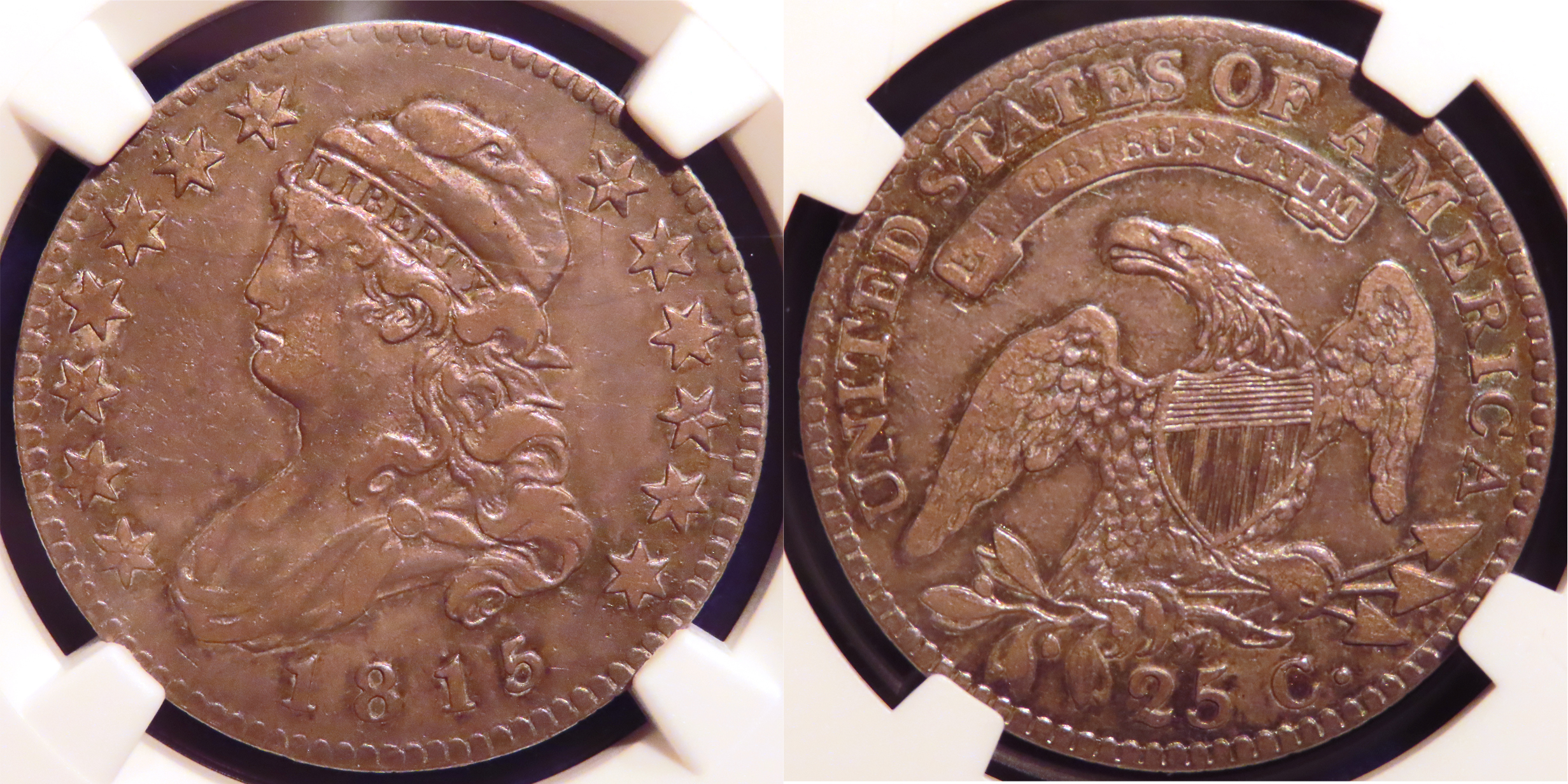After finishing a date set of cents from 1793 to 2025, I went after an 1815 quarter. That finished a date set of U.S. coins from all the years the mint system was in operation from 1792 to 2025.
