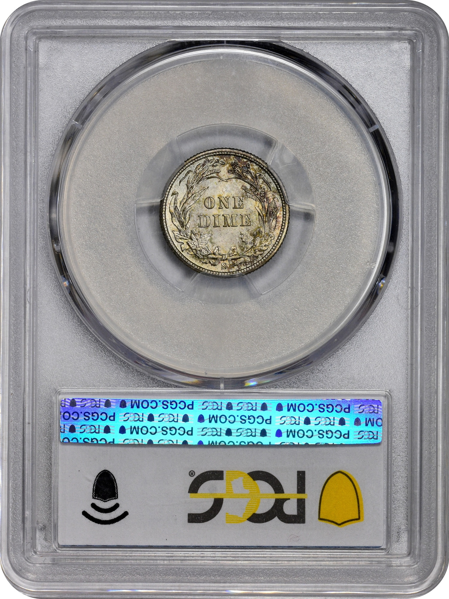 Single Finest Pop 1/0. The 1900-S Barber Dime, certified PCGS MS67+ CAC, stands as the definitive condition-census trophy for the series. This is the only coin to achieve a Plus designation at PCGS and the sole CAC-endorsed piece at this level, with none graded finer by either service. While Mint State 1900-S dimes surface occasionally, they become exceedingly rare in MS66 and are virtually unknown in true Superb Gem condition. The coin glows with ivory-white brilliance across the fields, framed by subtle golden-champagne and olive-russet toning, with hints of warm amber and pale rose at the margins. The reverse showcases concentric rings of peach, golden-orange, and lavender-blue, with brilliant silver luster at the center. The surfaces are immaculate and entirely untouched, complemented by a razor-sharp strike on this San Francisco Mint issues. With its combination of top-pop rarity, superb eye appeal, flawless preservation, and CAC verification, this coin is a Registry Set cornerstone and an elite-level acquisition for the connoisseur of original, toned 20th-century silver.