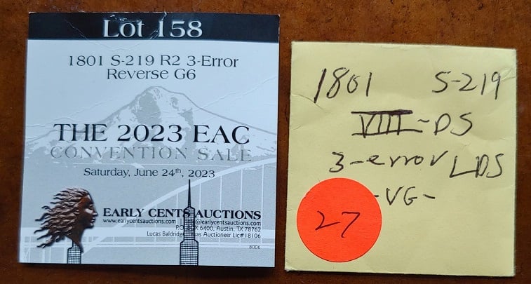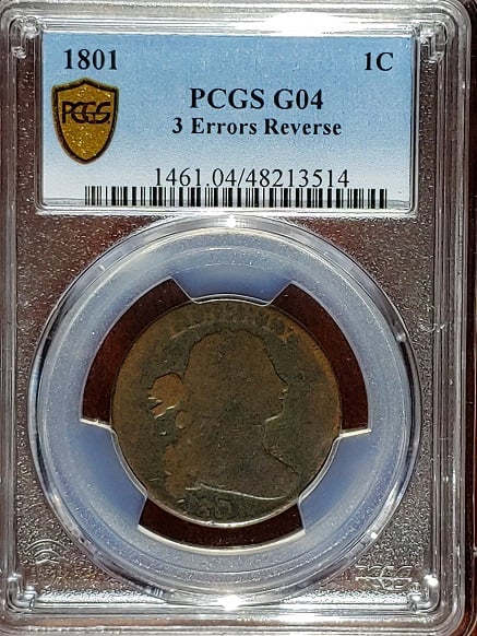 1801 3 Errors PCGS G4 $350. Prior to cert., this coin was graded EAC G6 (presumably by McCawley/Grellman).