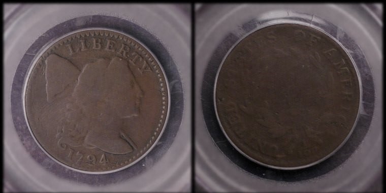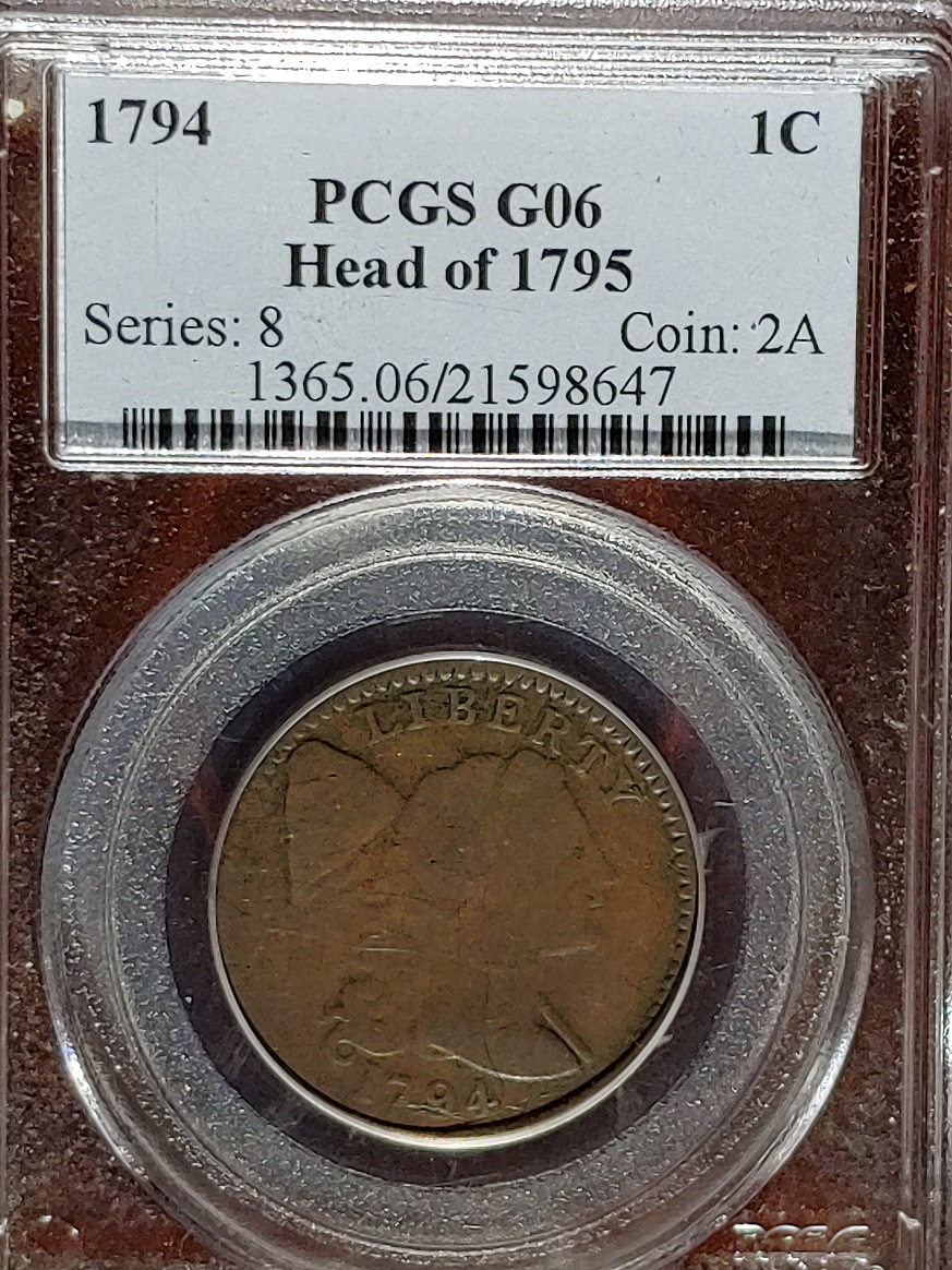 1794 (Head of 1795) PCGS G6 $625. Old photo from original purchase plus new of coin in holder: