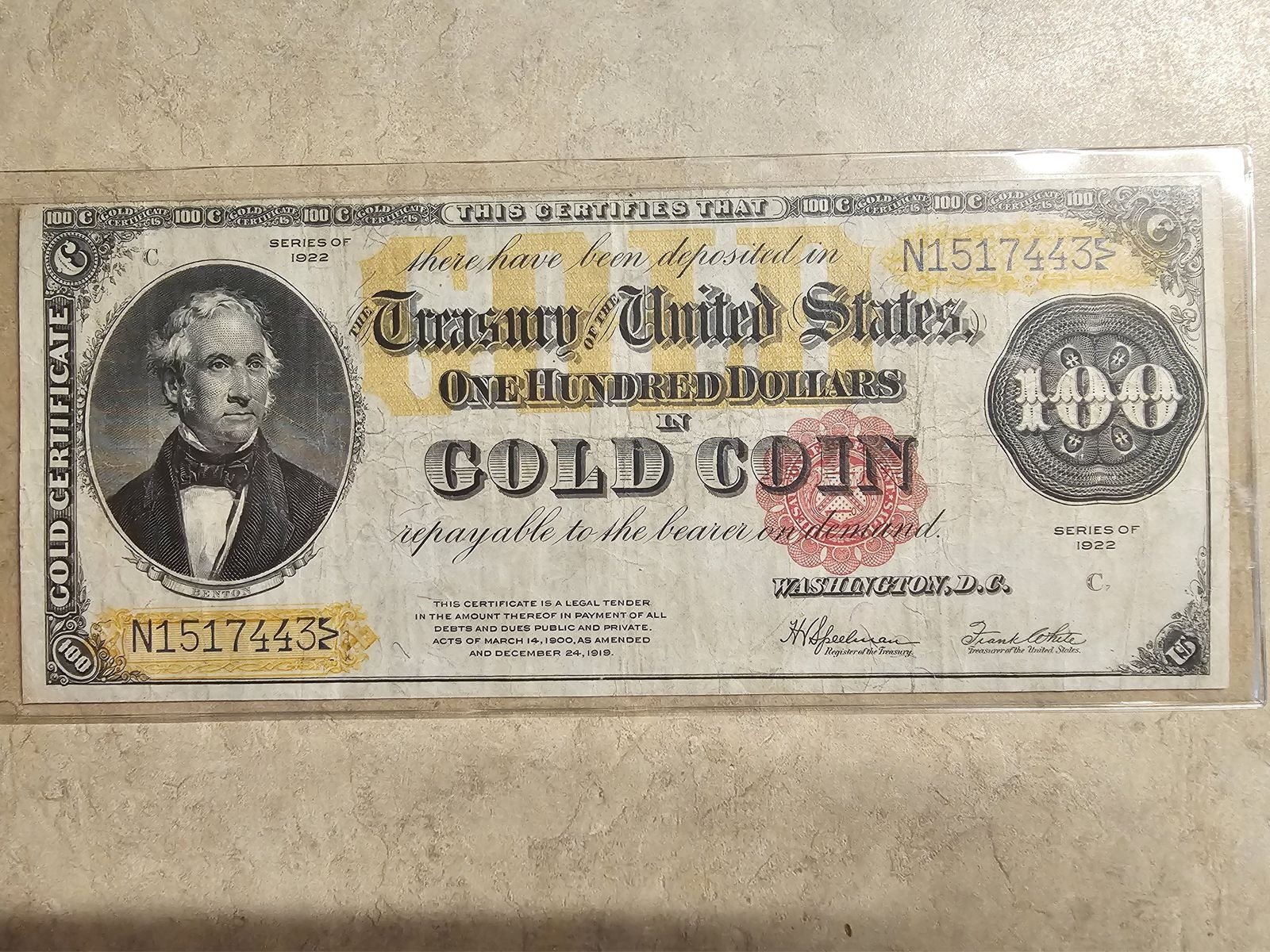 1922 Gold Certificate SOLD