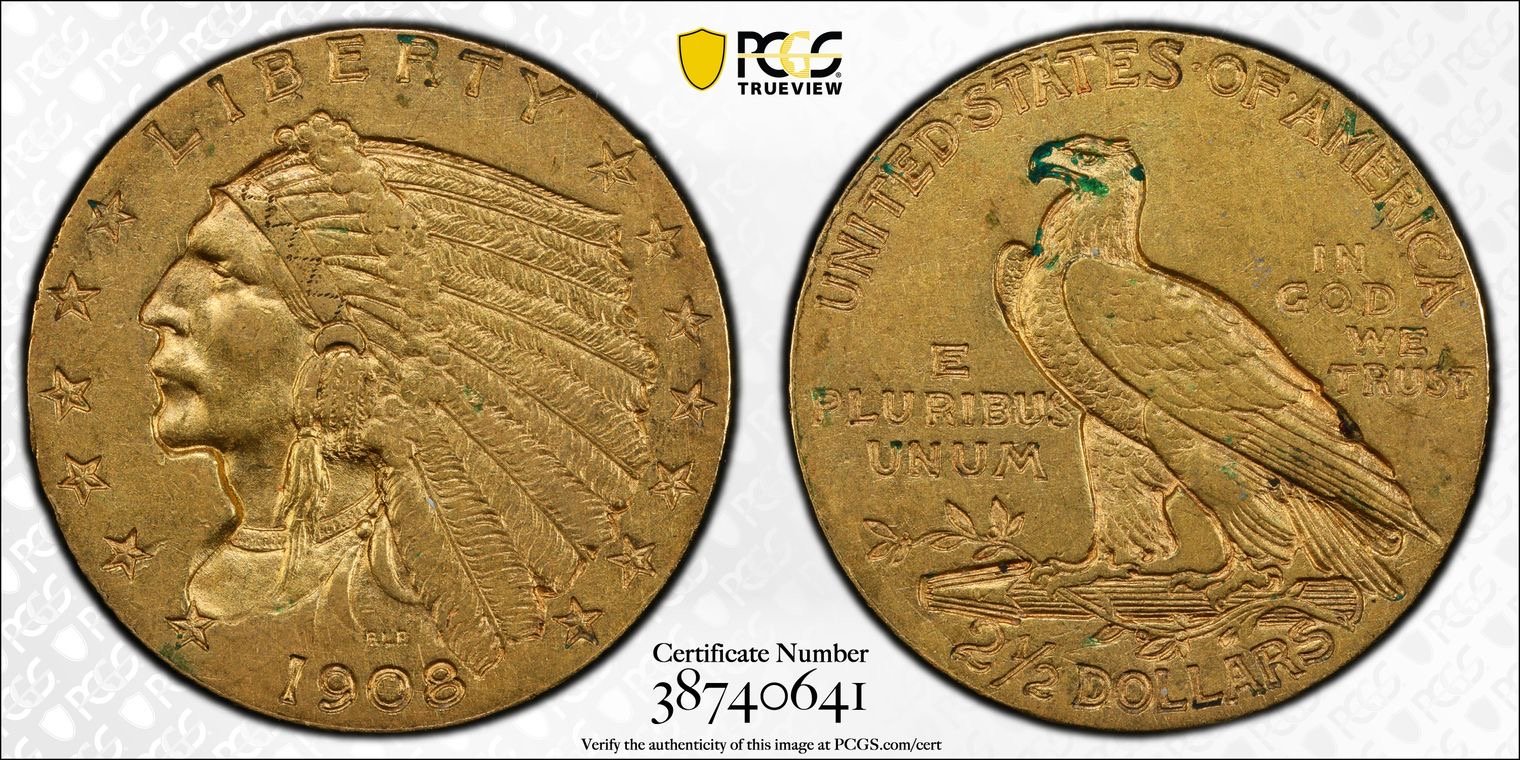 This 1908 $2.5 gold Indian has a bunch of green spots, PVC maybe? Would this qualify for restoration? As seen on the true view pictures, the spots were there when it was graded, and it seems like if it could be restored they would’ve done it at that time. Anyone have experience with the process?