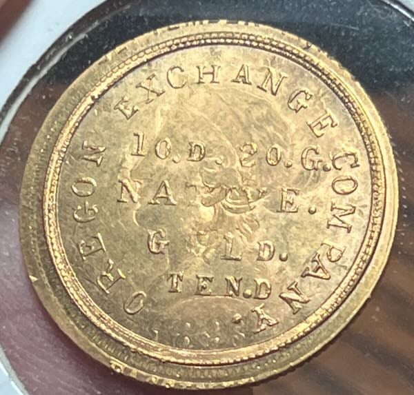 ONS central motif of the Oregon Exchange Company struck over a 1893 $10 - $200 over melt delivered. Unique underdate.
