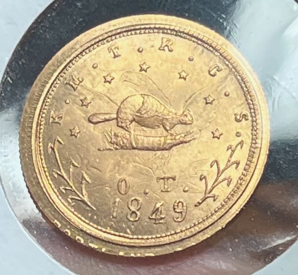 Mule using the large and small beaver designs, struck over a 1849 $10 - $400 over melt delivered - made in a very small number.