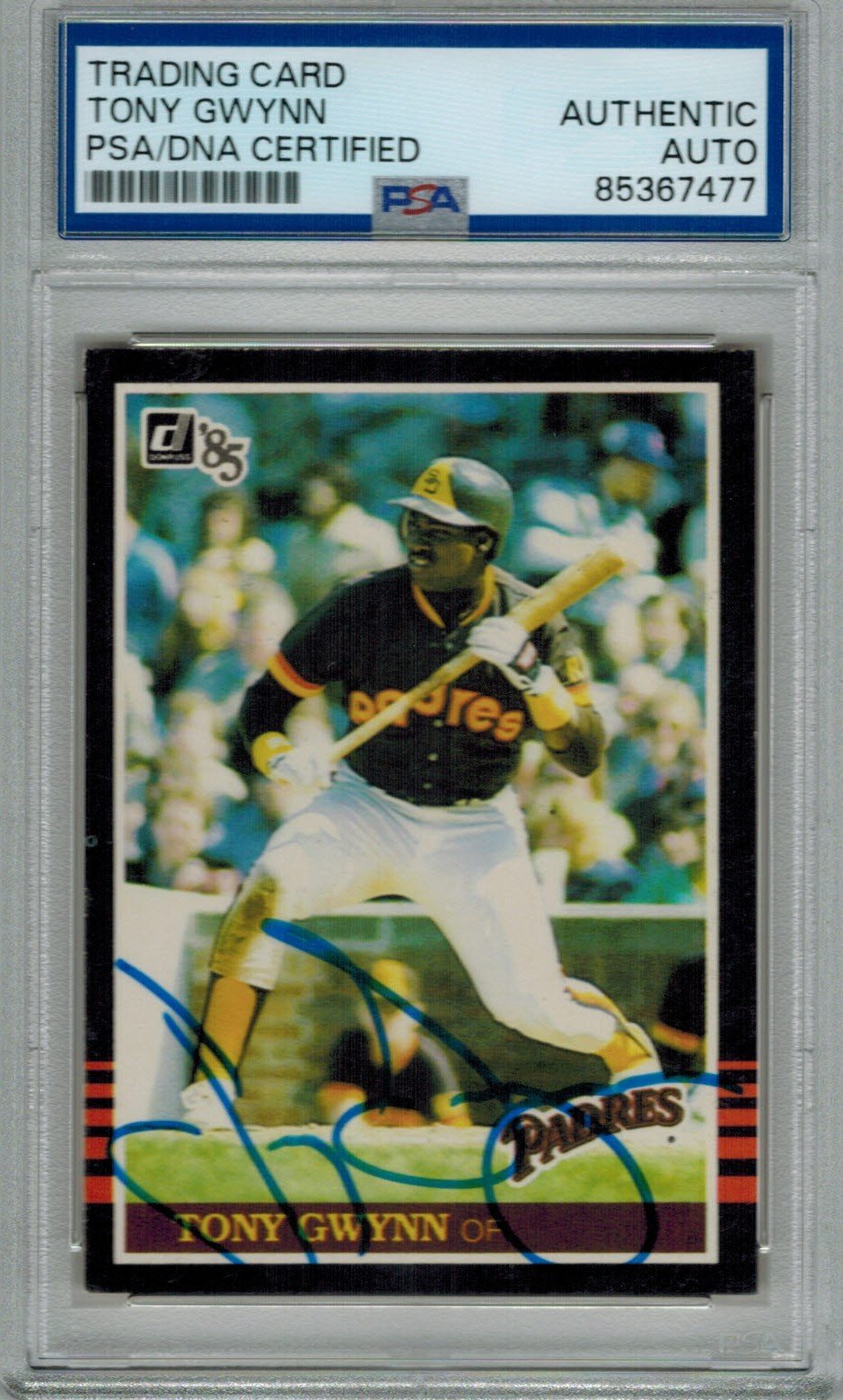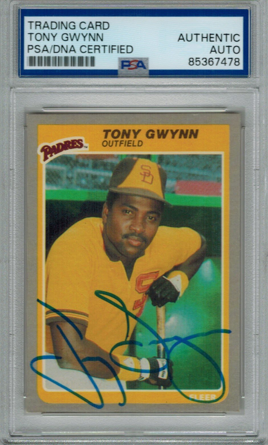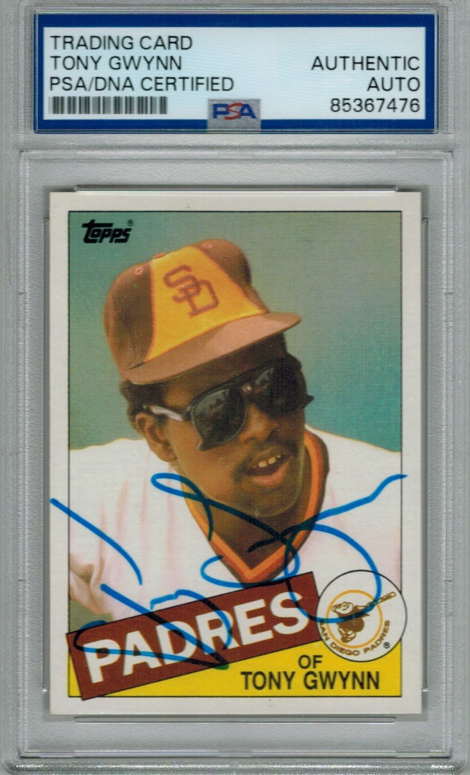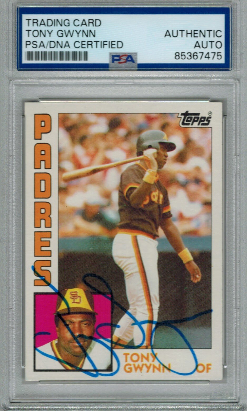 Tony Gwynn was a known signer and I sent all of these cards for him to sign (care of the Padres) over a time period. The signatures seem to be a few different styles: more of a round loopy signature and in the last picture, a group that is more sharp and angular. I have looked on eBay at PSA DNA examples and it seems there are many different looking signatures that are encapsulated. I saw some eye popping numbers under 'sold items' for his signed 1983 Topps card. This got me thinking of submitting some of these. What are your thoughts on the signatures and what would be the best PSA service to use (ie - 'authentic', grade the signature, grade both signature and card)? I have never sent a signed card to PSA before.
