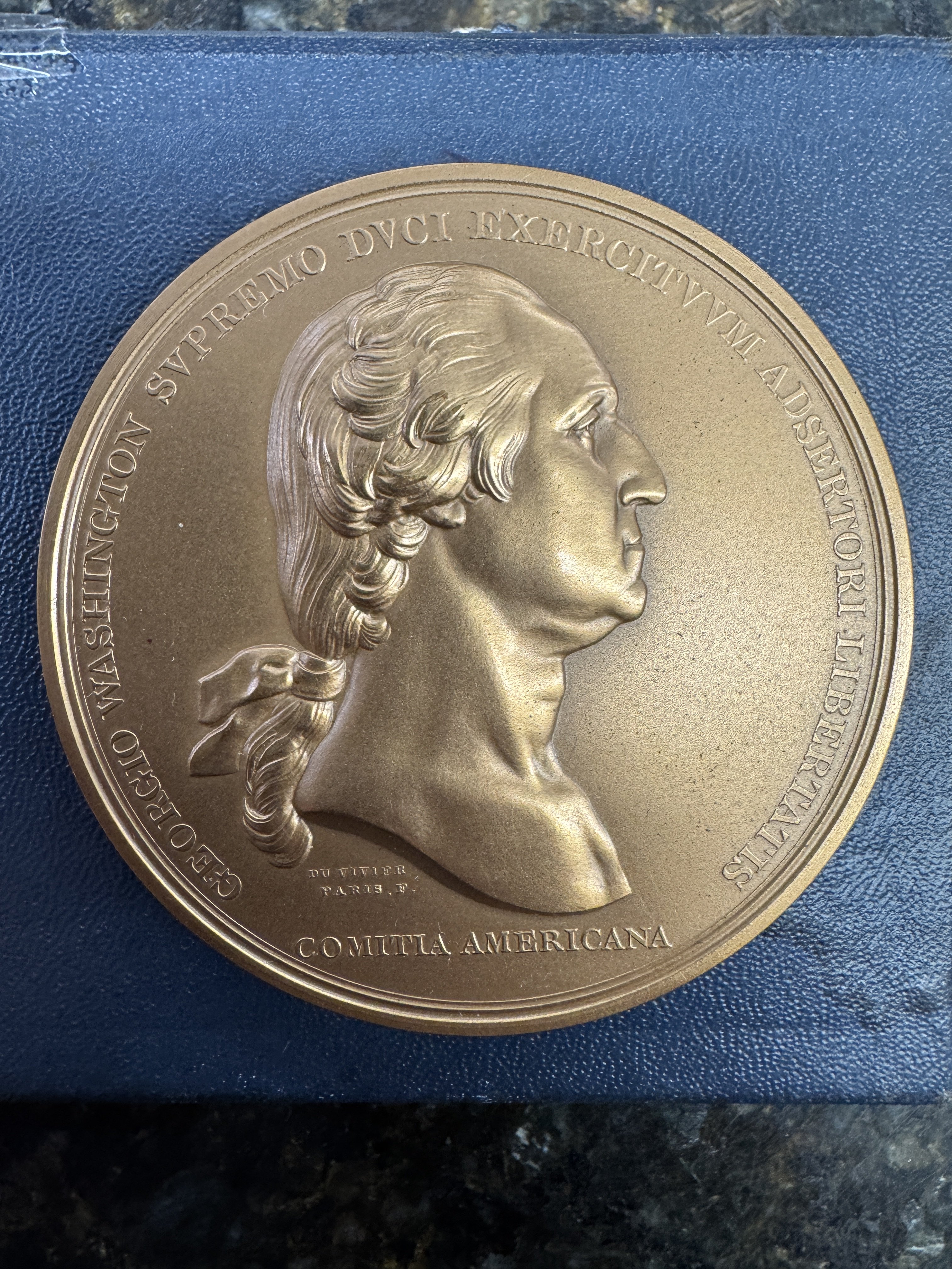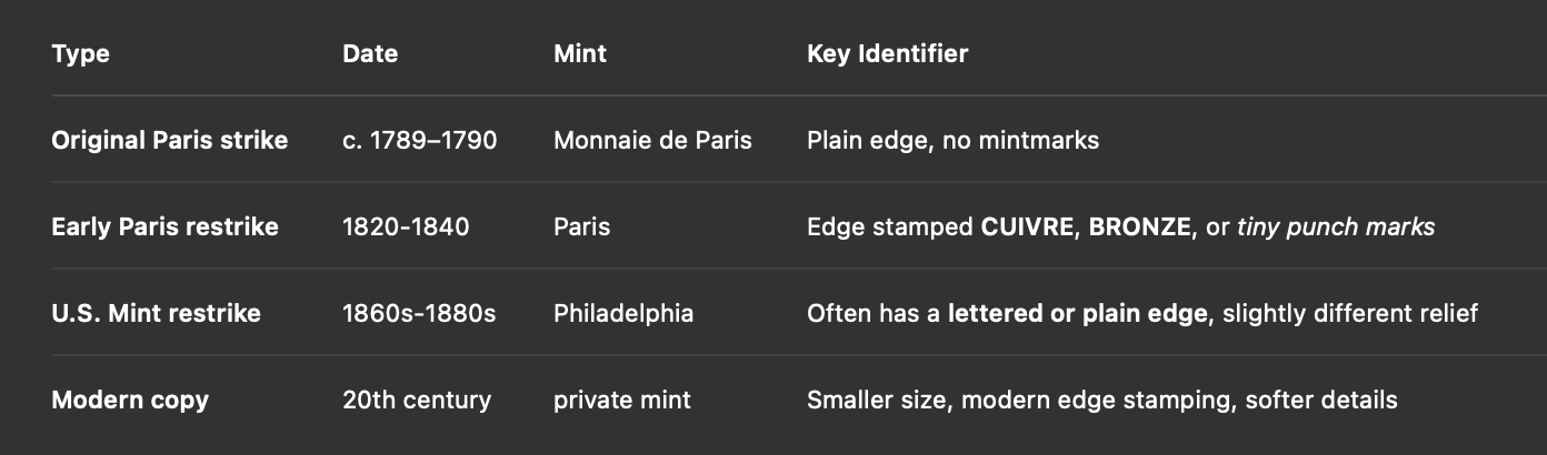So, anyone have an reference material they suggest for pieces like these? There is no hallmark on the edge (no BRONZE and no BRONZE+Cornucopia). The dot after the F in DUVIVIER PARIS .F. is raised slightly higher on the horizon than the proceeding dot. I swear for all the world this thing looks 1970s+ and not 1870s. But everything I've been able to find wants to point me to a pre-1880s Paris restrike. Any help would be most appreciated. It also came with the card pictured and in a presentation case the medal doesn't fit perfectly into.