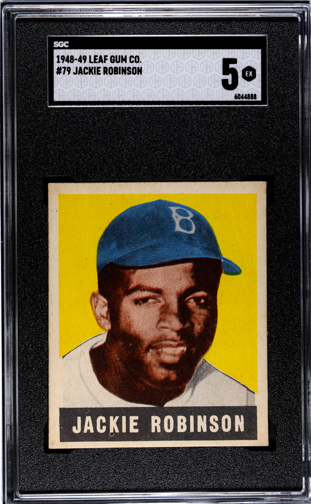 Crossing to a PSA grade seems to be lower than the SGC grade by 1/2 to 1 grade. Personally….I prefer to have my cards in PSA holders….despite the nice contrast of the black holder with the yellow background on the 1948 Leaf Jackie Robinson Rookie card.
