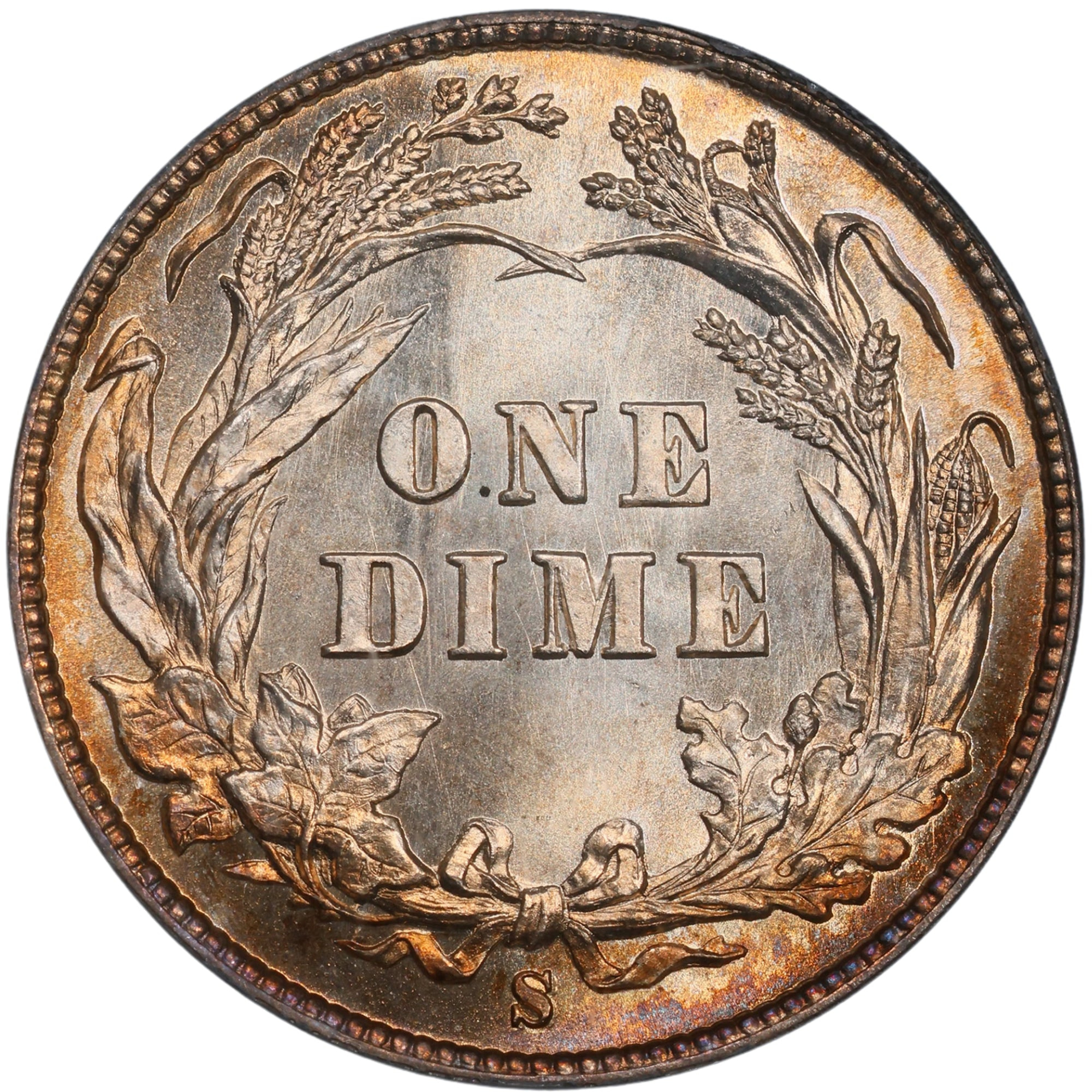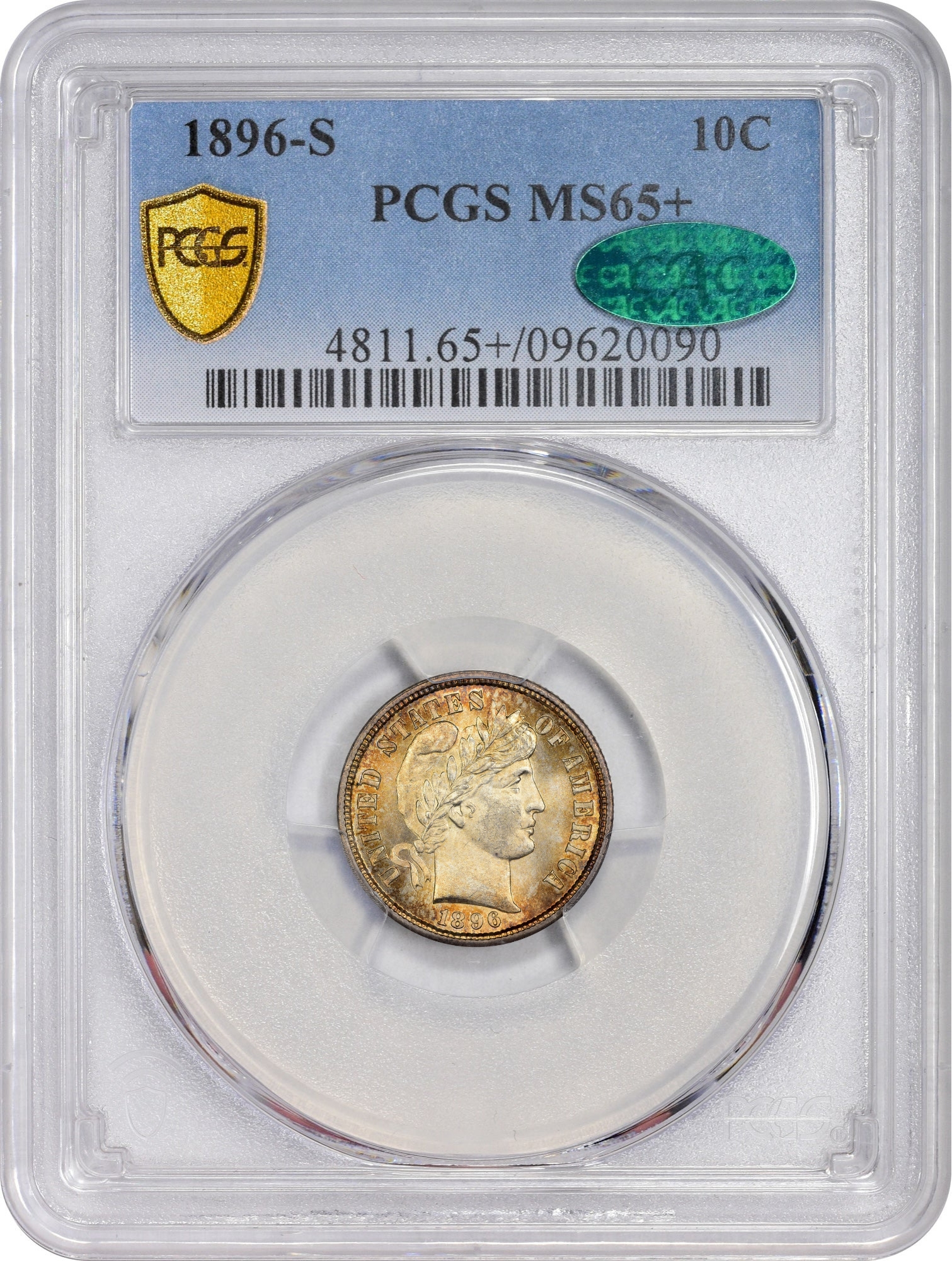 SOLD : 1896-S 10C MS65+ PCGS CAC