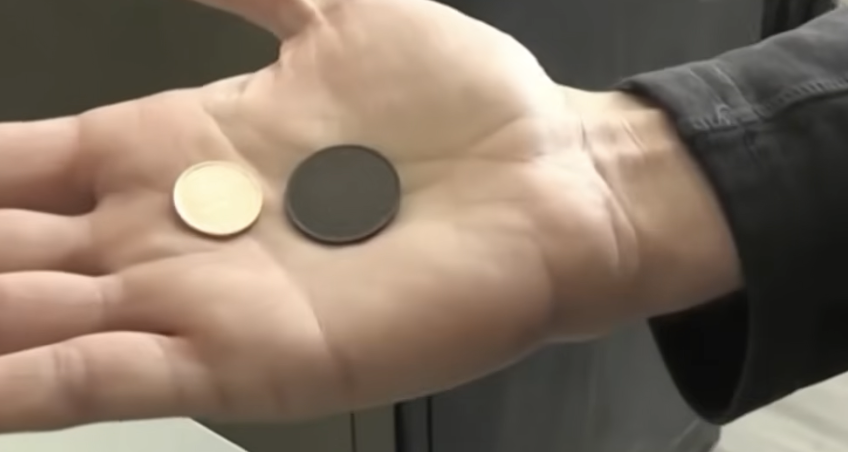 The coin is circulated, nothing he is doing in the video will cause it harm.
