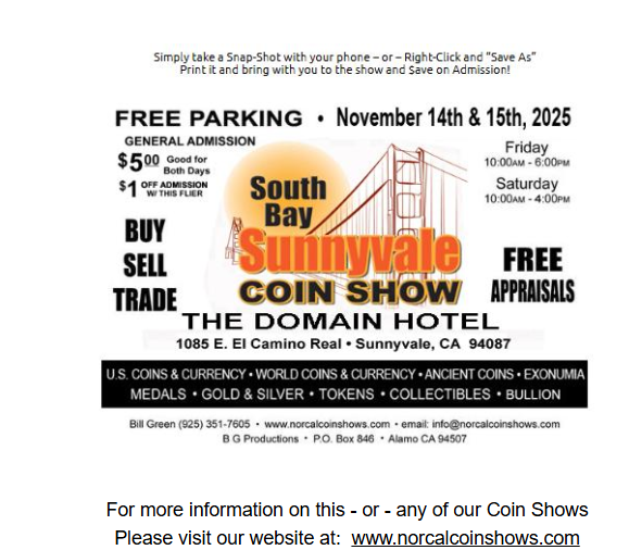 SUNNYVALE COIN SHOW, Nov 14th & 15th