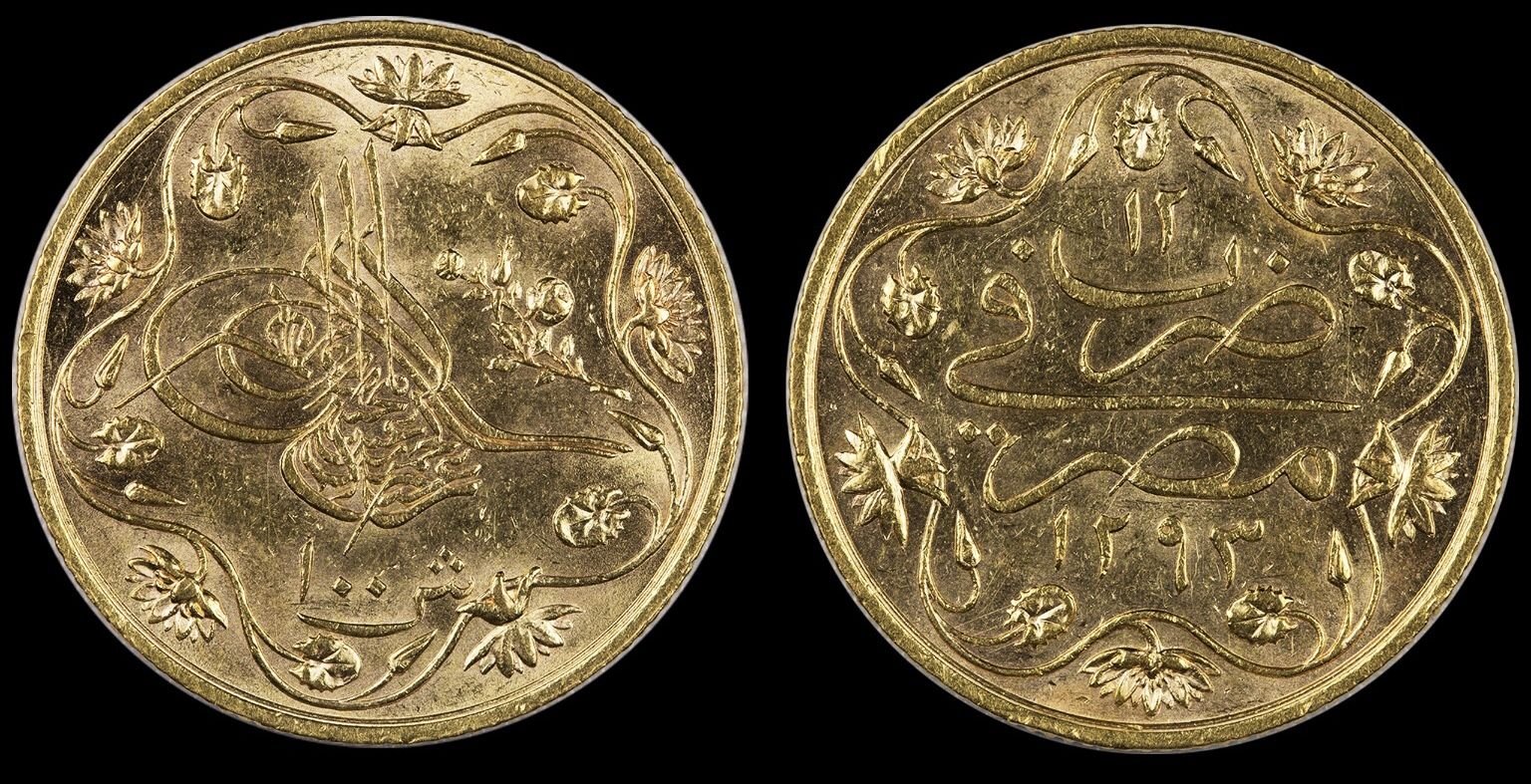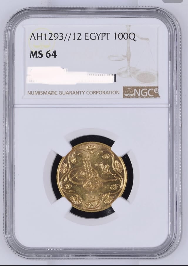 FSH: Egypt gold AH1293/12 100 qirsh NGC MS64